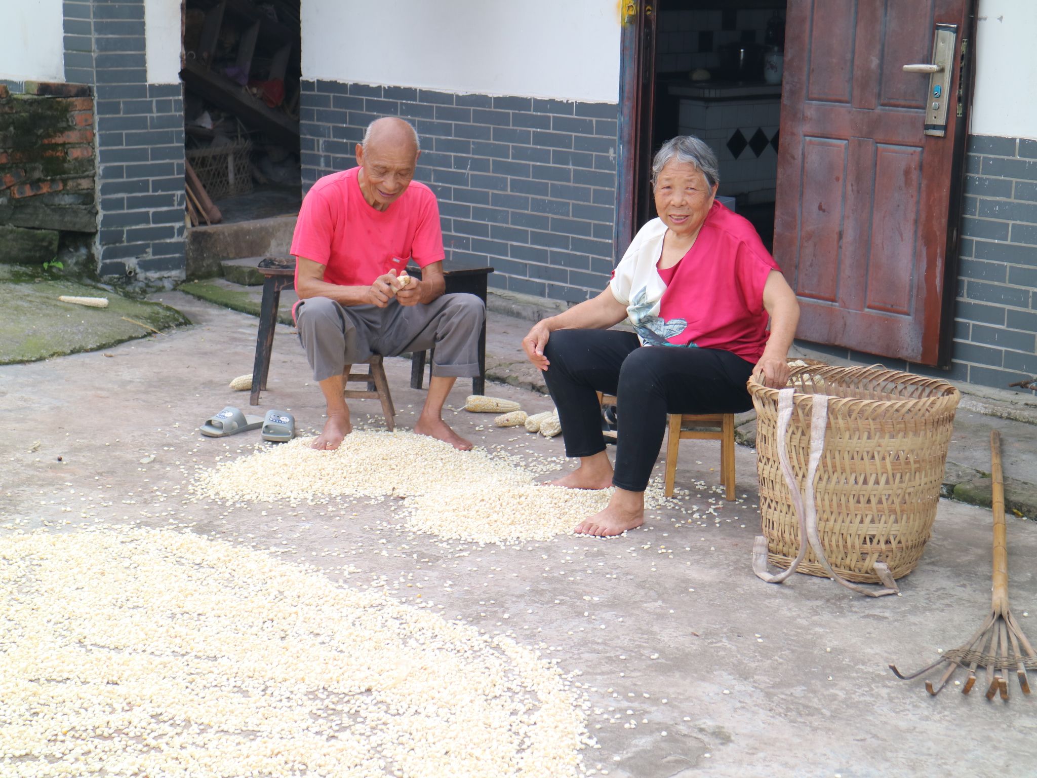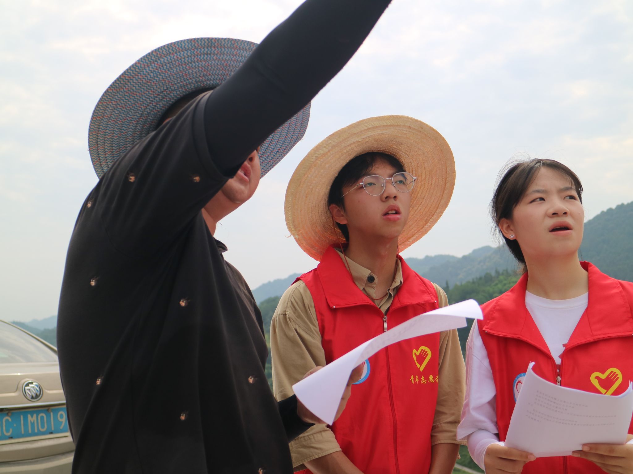 实践团指导老师殷蓉老师通过村委会副主任联系到果园负责人,带领实践团前往柑橘园。凉爽的风拂面而来,米坊村的早晨也是一片祥和的景象:房屋前的坝子上有说说笑笑剥玉米的村民,田埂上有巡视庄稼长势的村民,远处的“房屋立面改造”计划在有序实施。