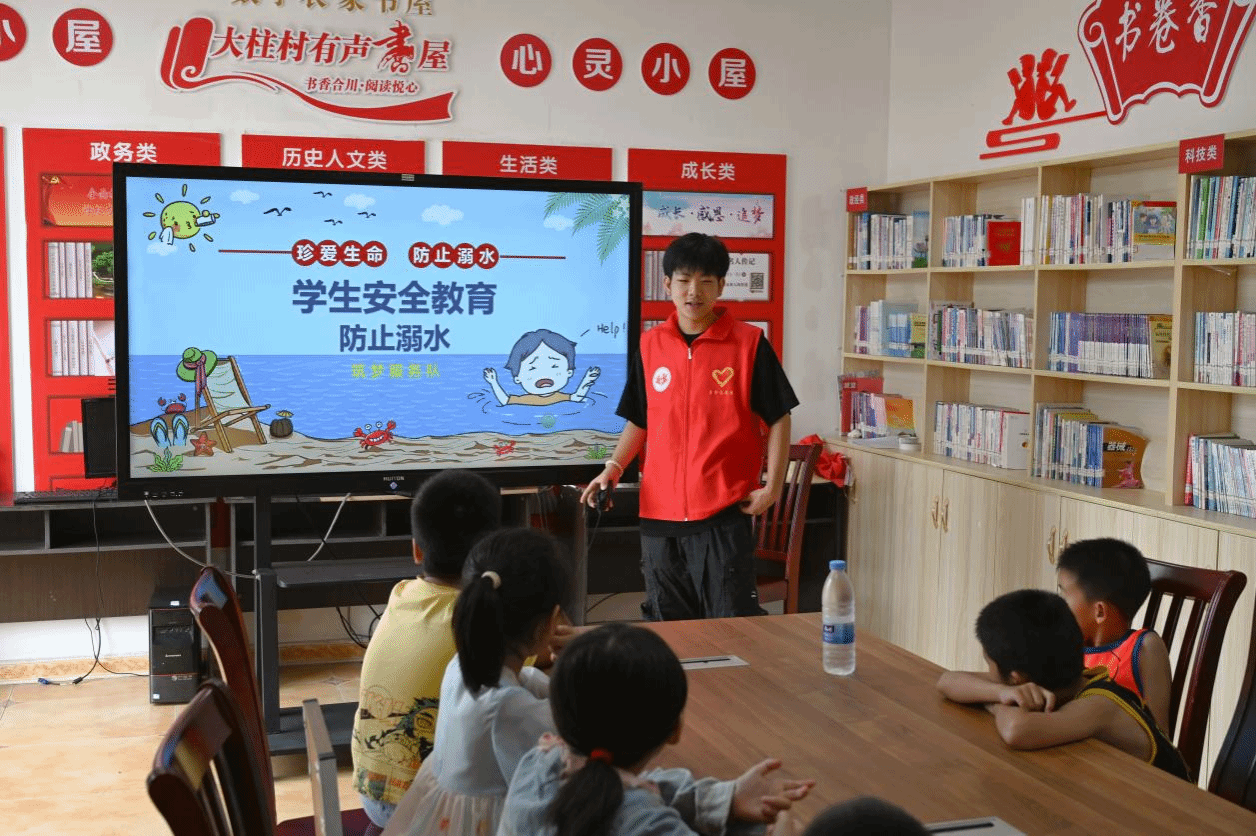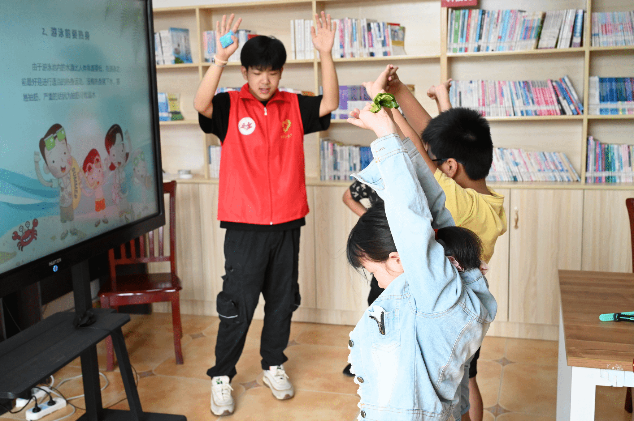 “大家知道如何预防溺水吗?”志愿者们一边展示PPT一边向小朋友们提问。“不去河边游泳!”“不能一个人去河边玩!”“溺水要保持冷静!”孩子们与志愿者积极互动,教室中充满着欢语。为进一步增强留守儿童防溺水安全知识,预防和减少涉及儿童溺水事故的发生,筑梦服务队将防溺水安全教育带进七彩课堂,志愿者们通过PPT、绘本故事、观看安全小视频、教唱溺水自救歌等多种形式,让小朋友了解溺水的危害性及简单的溺水自救方法。同时,志愿者们详细讲解游泳注意事项、不慎落水如何自救、自救技能和救生常识、同伴落水怎么救援等。防溺课堂的开展,进一步增强小朋友们防溺水安全知识,为小朋友们筑成一道安全防线,撑起一片生命安全的蓝天。