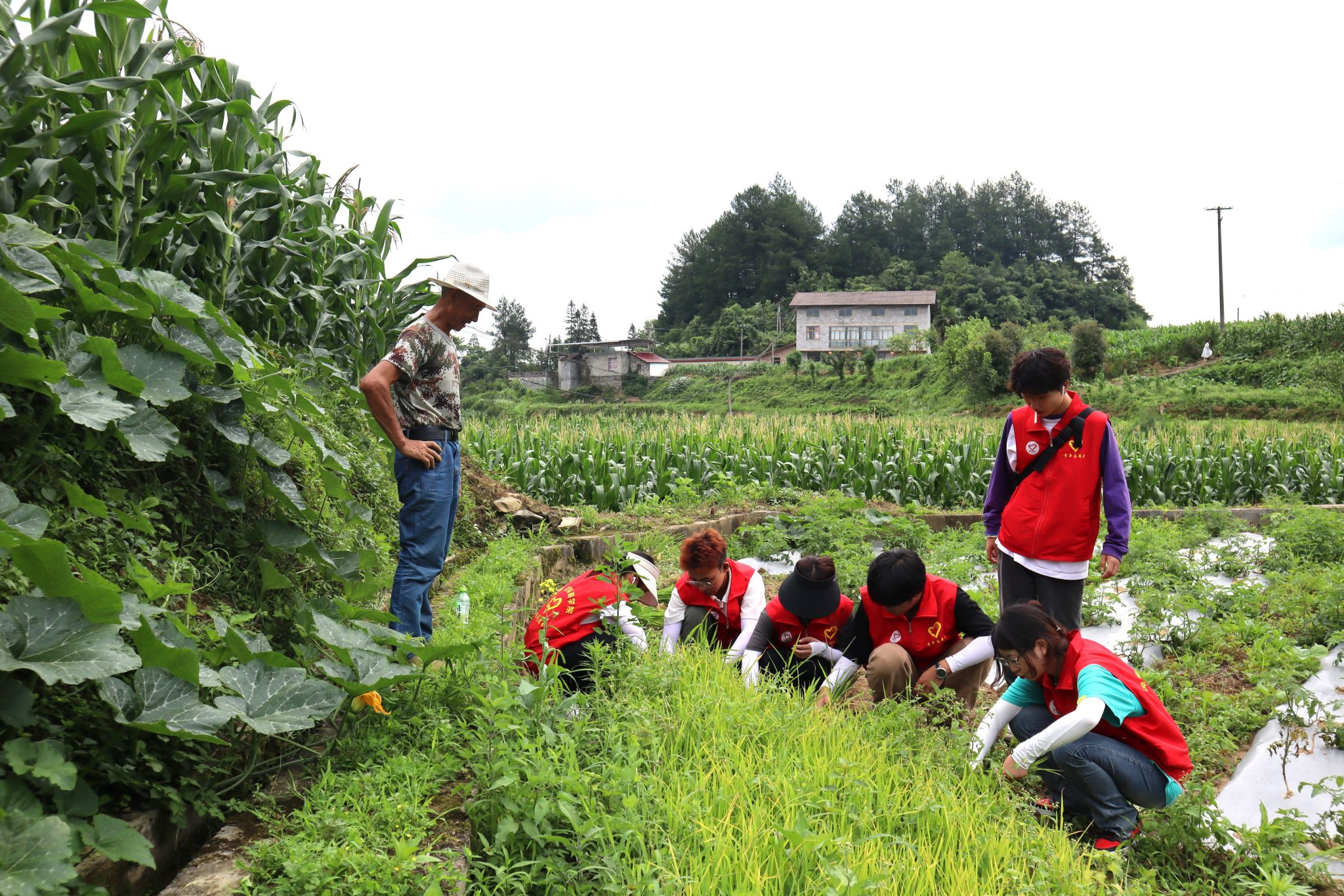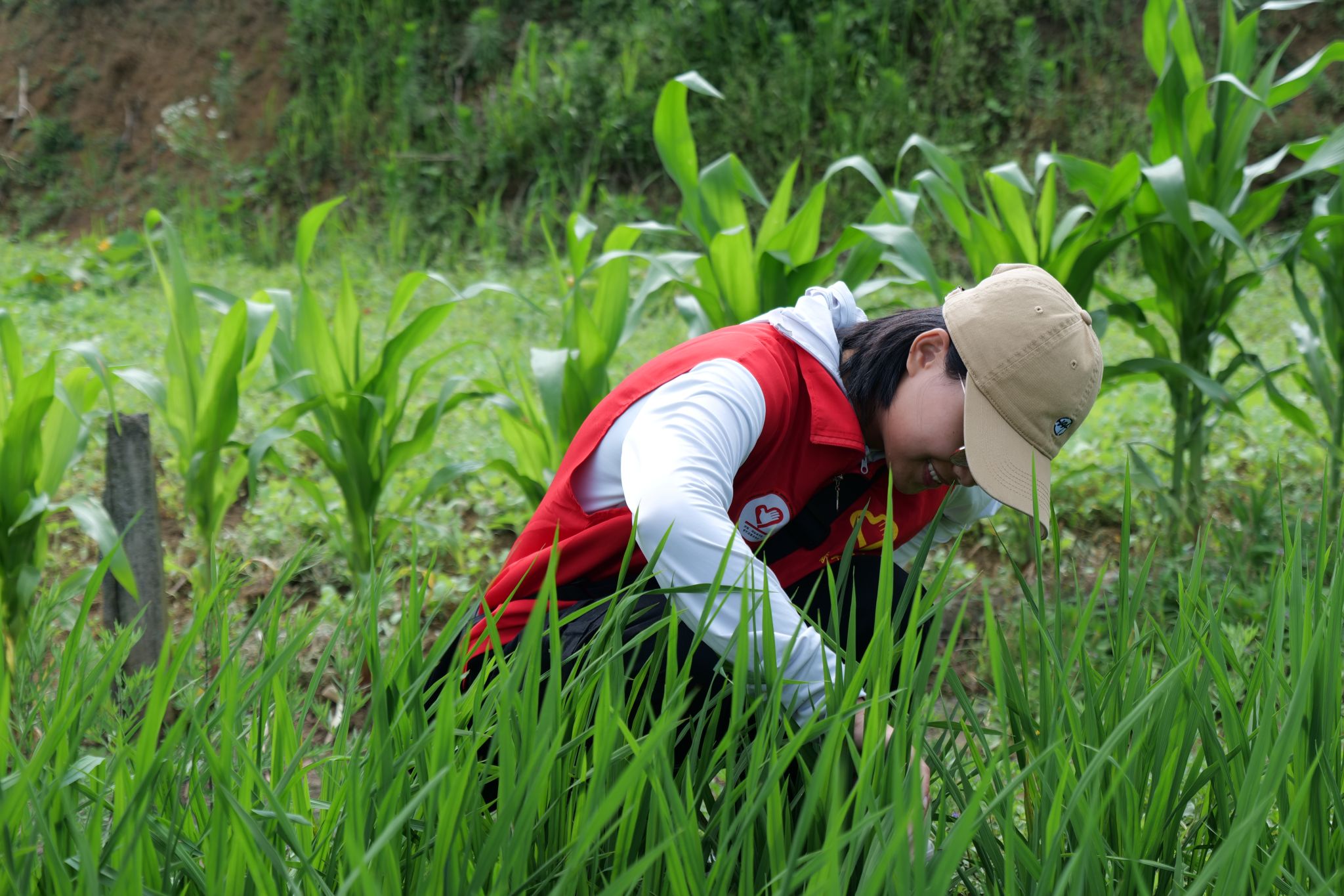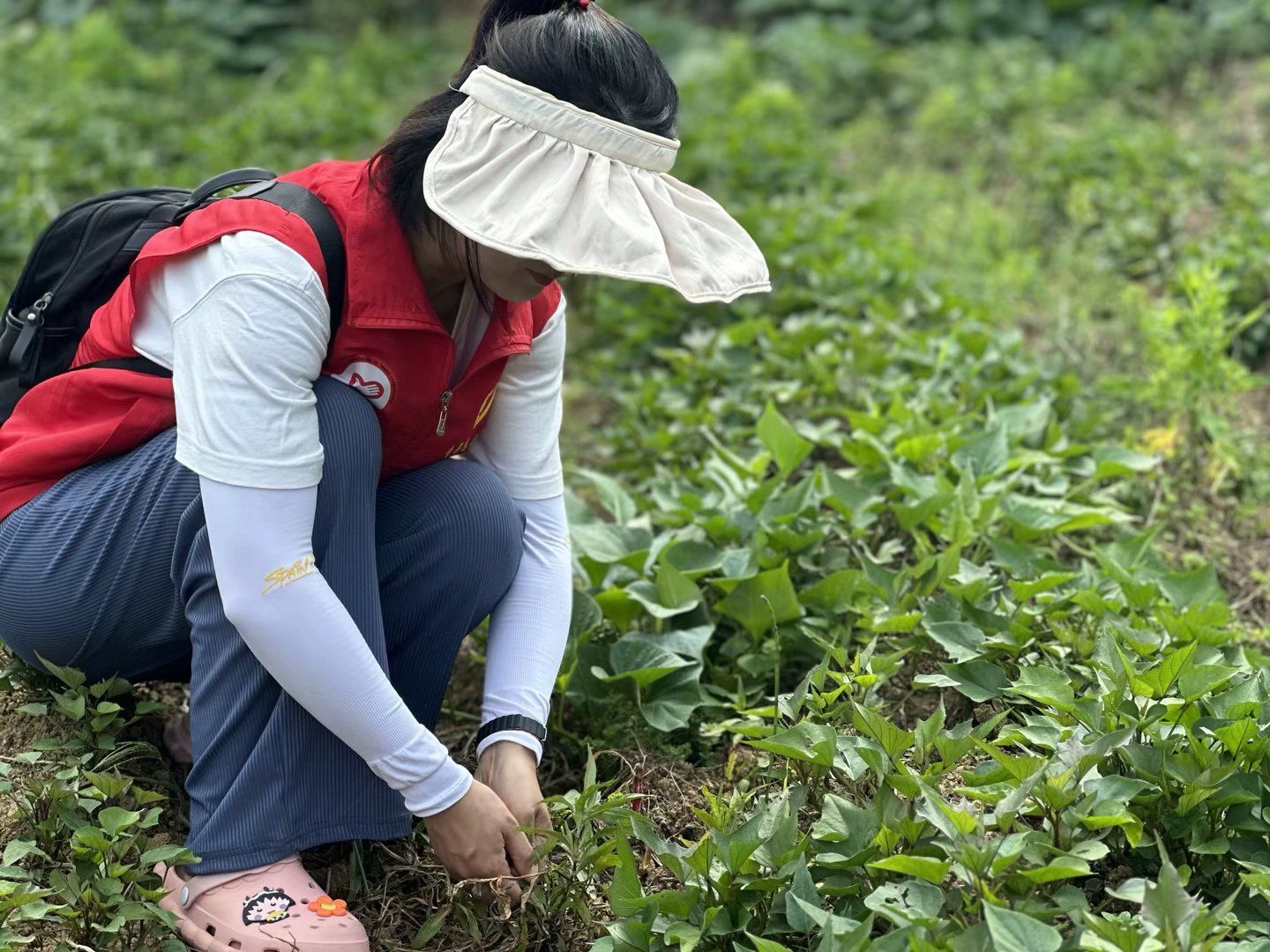 因杜鹃花的最佳观赏季节已经过去,工作人员直接带领幸福家的成员们前往小槽有机蔬菜园进行幸福村生态农业的考察和体验。穿过高于人的玉米田间,路旁是成片的水稻、大豆、向日葵。路上幸福家的成员遇到了正在给大豆田除草的农户大叔,幸福家的成员们一起出动,挽起袖子去到田间,协助农户大叔整理大豆田。在农户大叔的指导下,幸福家的成员们积极投入了除草活动。一手握着镰刀,一手拔着杂草,幸福家成员认真劳作的样子被阳光映射成一道道美丽的弧线。烈日下劳作的幸福家的成员们虽然已经汗流浃背,但当看着被除去的杂草堆得越来越高,心里就感到无比的自豪与满足,脸上也洋溢着笑容。在除草过程中,农户大叔告诉幸福家的成员在小槽有机蔬菜园种有玉米、大豆的对比田,玉米和大豆间作能够提高玉米和大豆的产量,对比田可以让前来体验采摘的“小游客”在采摘的过程中积累农作知识。