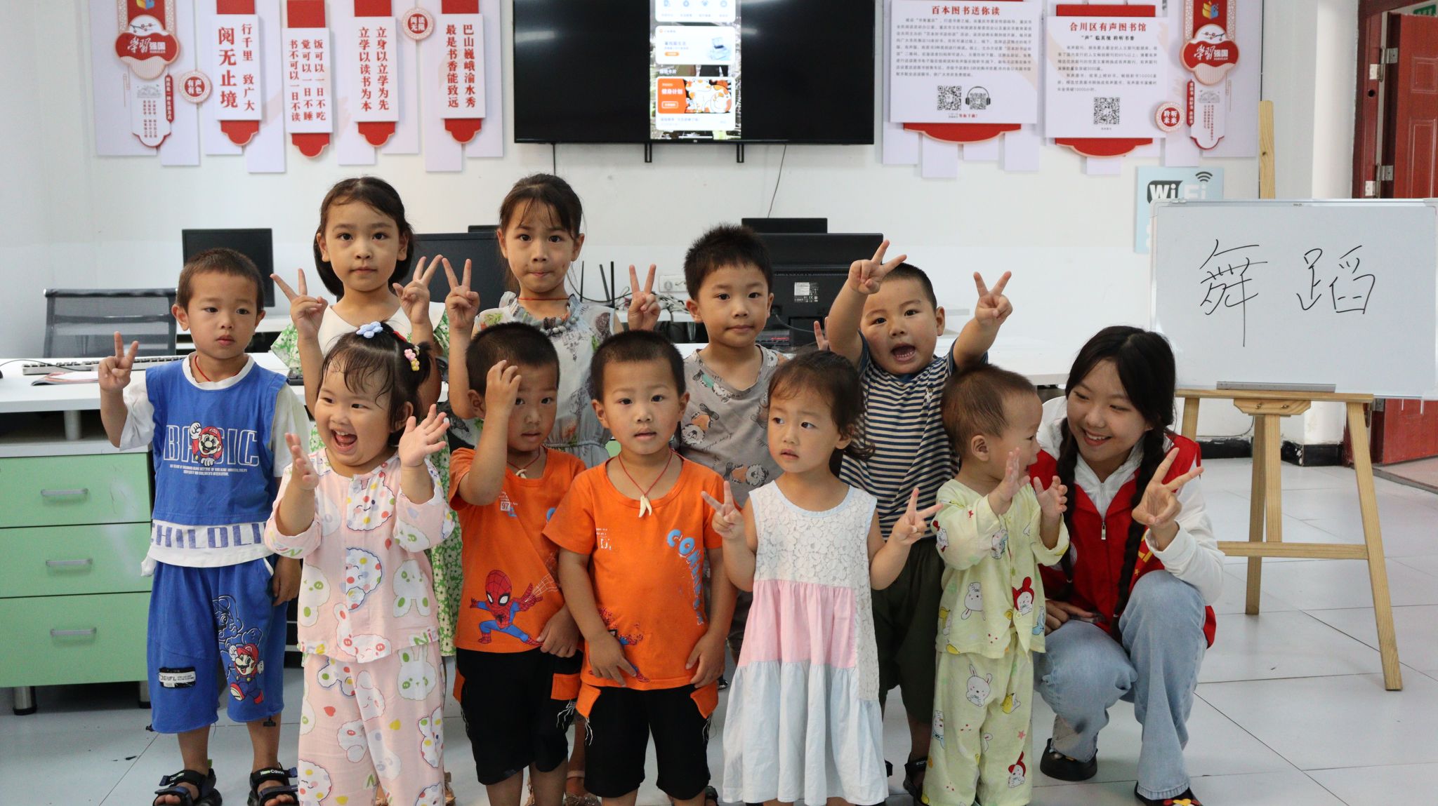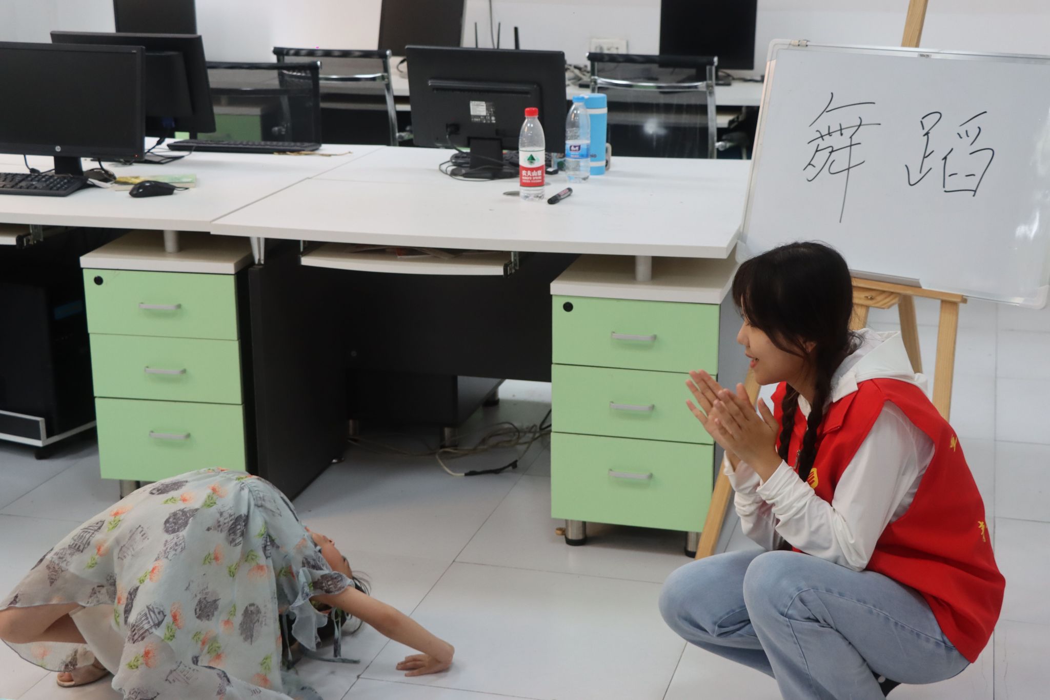 实践组在原有基础上完善课程设计方案,结合自身优势在进行细化分工,6日早上9点,“红领巾课堂”正式开课。现场共有约20位小朋友来参与此次活动,根据不同年龄段,课堂分成了两个板块,小学在读的儿童有队员一对一作业辅导;幼儿园及以下的儿童由“小老师”带领完成课堂,寓教于乐,教授舞蹈、音乐、绘画等,通过动画片的形式给小朋友们普及安全知识、在游戏中挖掘小朋友的潜能、锻炼他们的动手能力,团队成员分工明确、执行迅速,以实际行动呵护当地儿童成长贡献自己的绵薄之力。