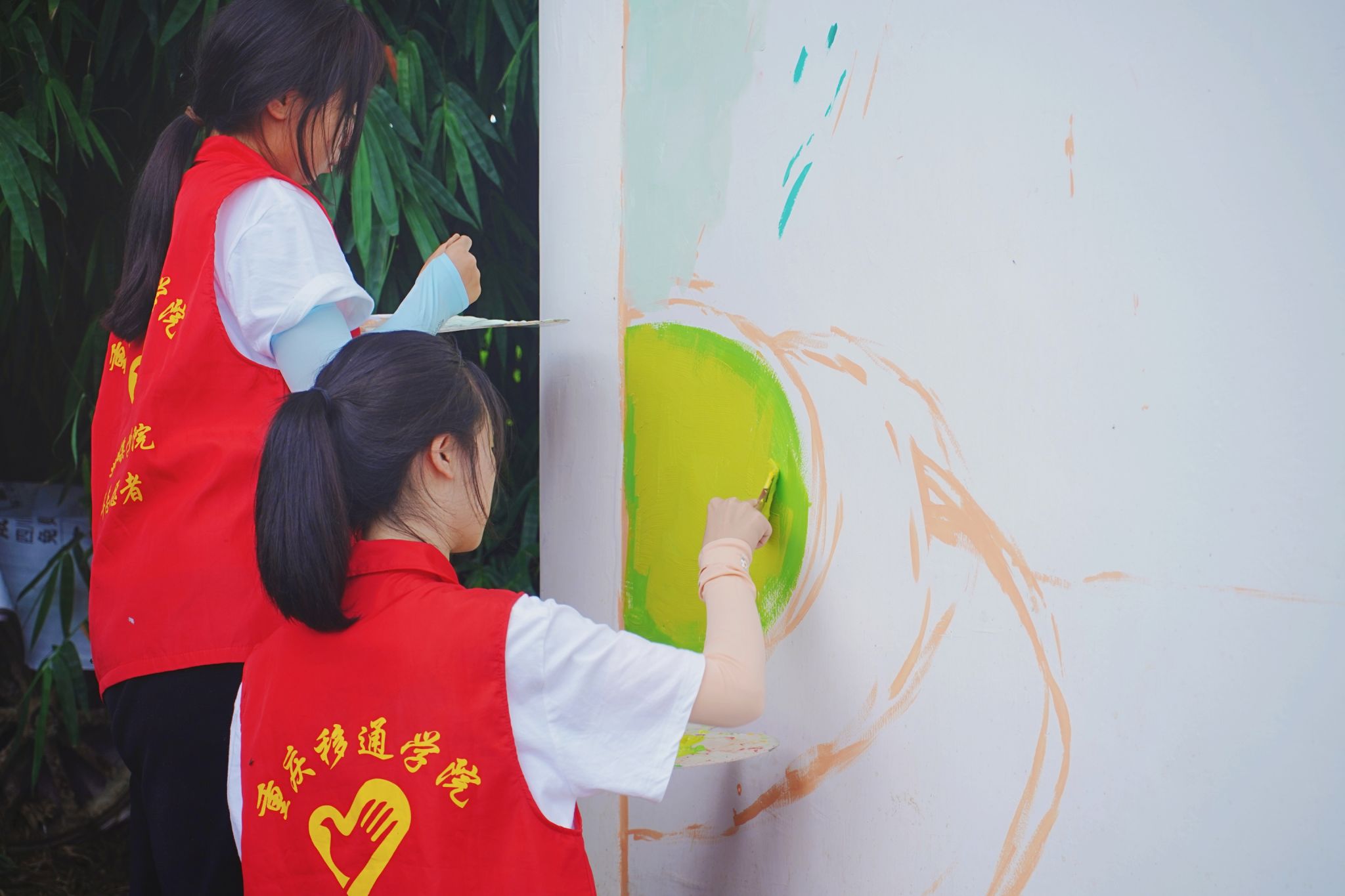 为了充分发挥学生的专业能力,深入基层,助力美丽乡村建设,促进乡村呈现新气象、焕发新生机,展示乡风文明,助力乡村振兴。2023年7月4日至5日,“美益乡村”文化艺术服务团奔赴重庆市合川区渭沱镇七星村,用墙体彩绘的方式开启2023年暑期“三下乡”社会实践活动,通过墙绘视觉设计进行生态环境美化,用画笔为乡村振兴贡献自己的青春力量。
