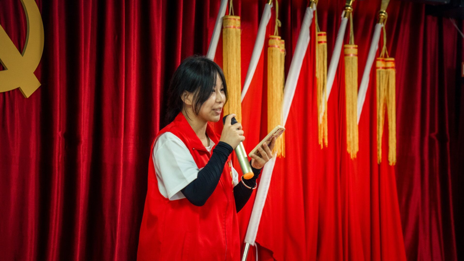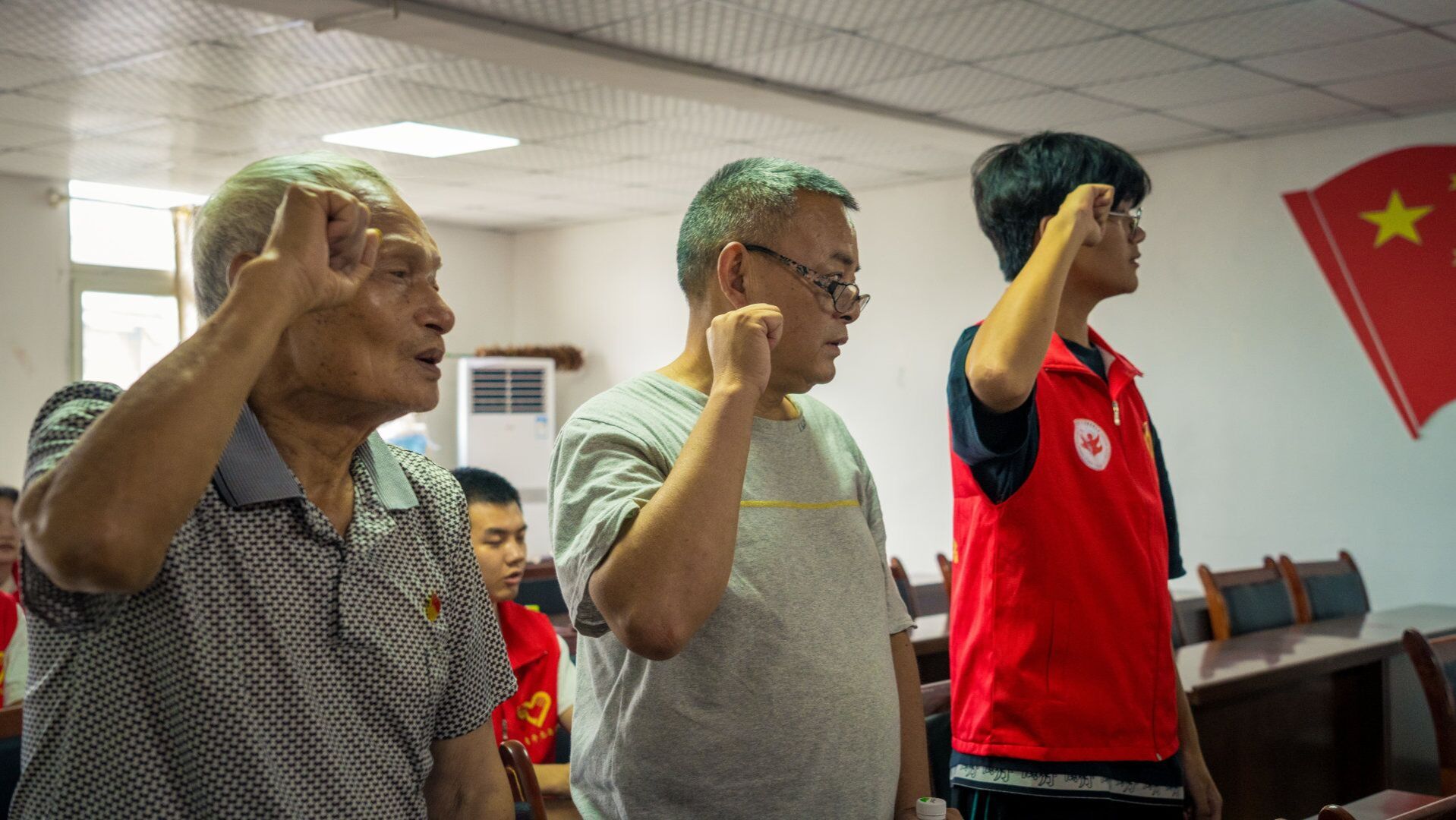 下午14:00,“薪火相传”主题党员活动在大路街道红石社区党群活动中心开展。随着《义勇军进行曲》前奏声响起,活动正式开始。全体起立,齐唱国歌,在场的所有人以洪亮的声音表达着对国家、对共产党的敬意和信任。接下来党员和团员们在主持人和两位领誓人的带领下,庄严地重温了入党誓词和入团誓词,一声声铿锵有力的宣誓词回荡在整个会议室,坚定的眼神将他们对入党、入团,为人民服务,不忘初心跟党走的决心展现得淋漓尽致。
