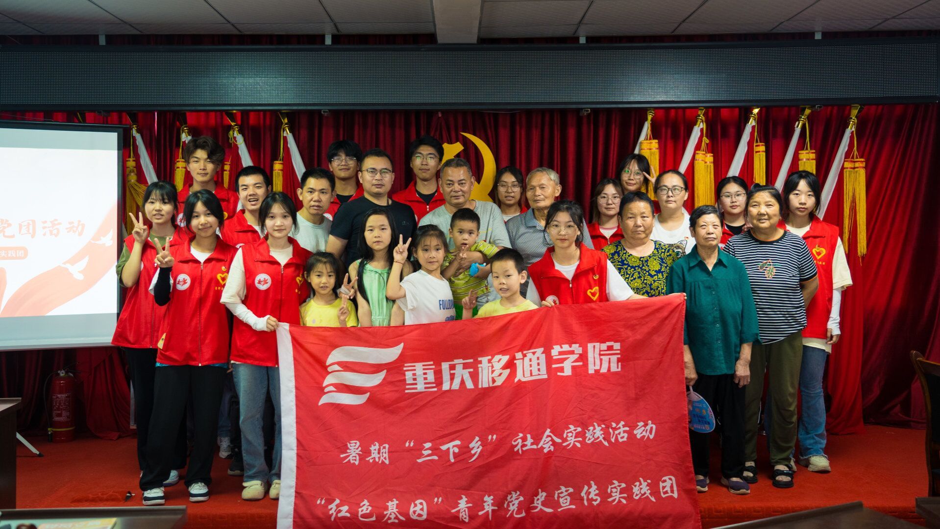 为了弘扬革命文化,传承红色基因,促使群众了解党史、学习党史、感悟党史,传递党团精神, “红色基因”青年党史宣传实践团的志愿者们于7月9日在璧山区大路街道红石社区党群活动中心开展了“薪火相传”主题党团活动。本次活动有幸邀请到大路街道优秀党员代表、优秀团员代表及三十余名社区居民、青少年儿童参与其中。活动环节设计饱含深意,现场党史学习氛围浓厚。