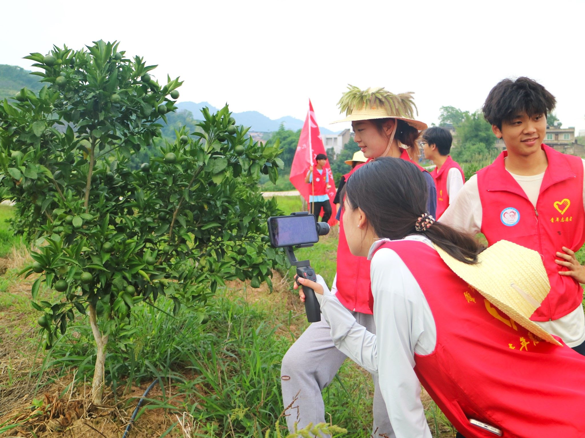 管理员秦东升向实践团介绍道,米坊村现在的果园都采用水肥一体化智能灌溉系统,取九峰山上流下的天然水,再与有机肥相融合,这样进行灌溉有利于果树的生长。秦东升还说道,现在果园里种植的是耙耙柑和爱媛38号,这类柑橘大概在十月份左右盛产,现在对于果实的培育主要是数量上的提升,待种植量稳定后,再进行品质层面的提升。在实地实践的整个过程中,抖音直播一直开放,以此来宣传米坊村的柑橘,推广销售途径,让更多人了解到米坊村柑橘,在直播的最后直播间获得了2.2万点赞量。