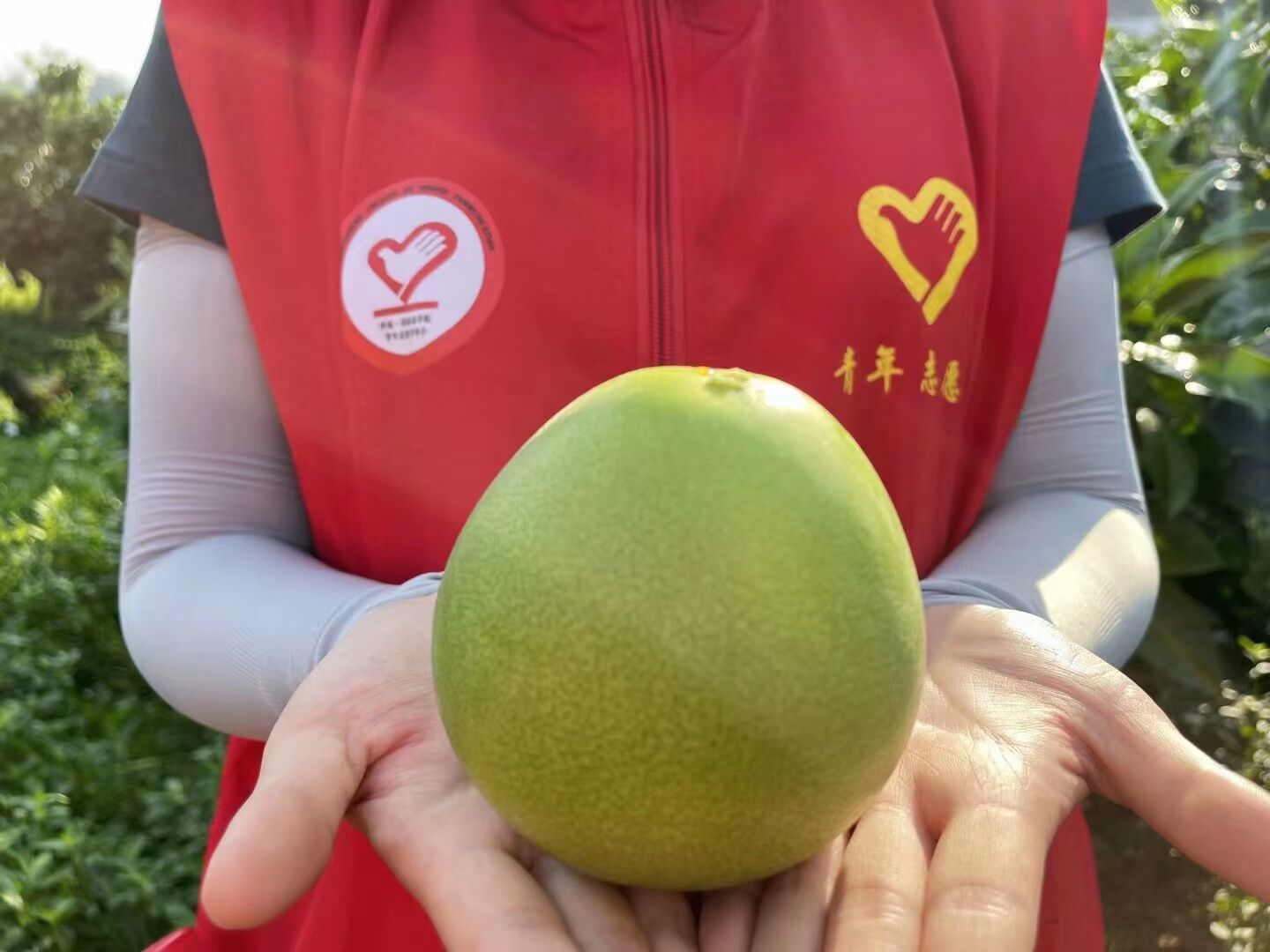 一双双巧手包裹着一个个碧绿的蜜柚。
