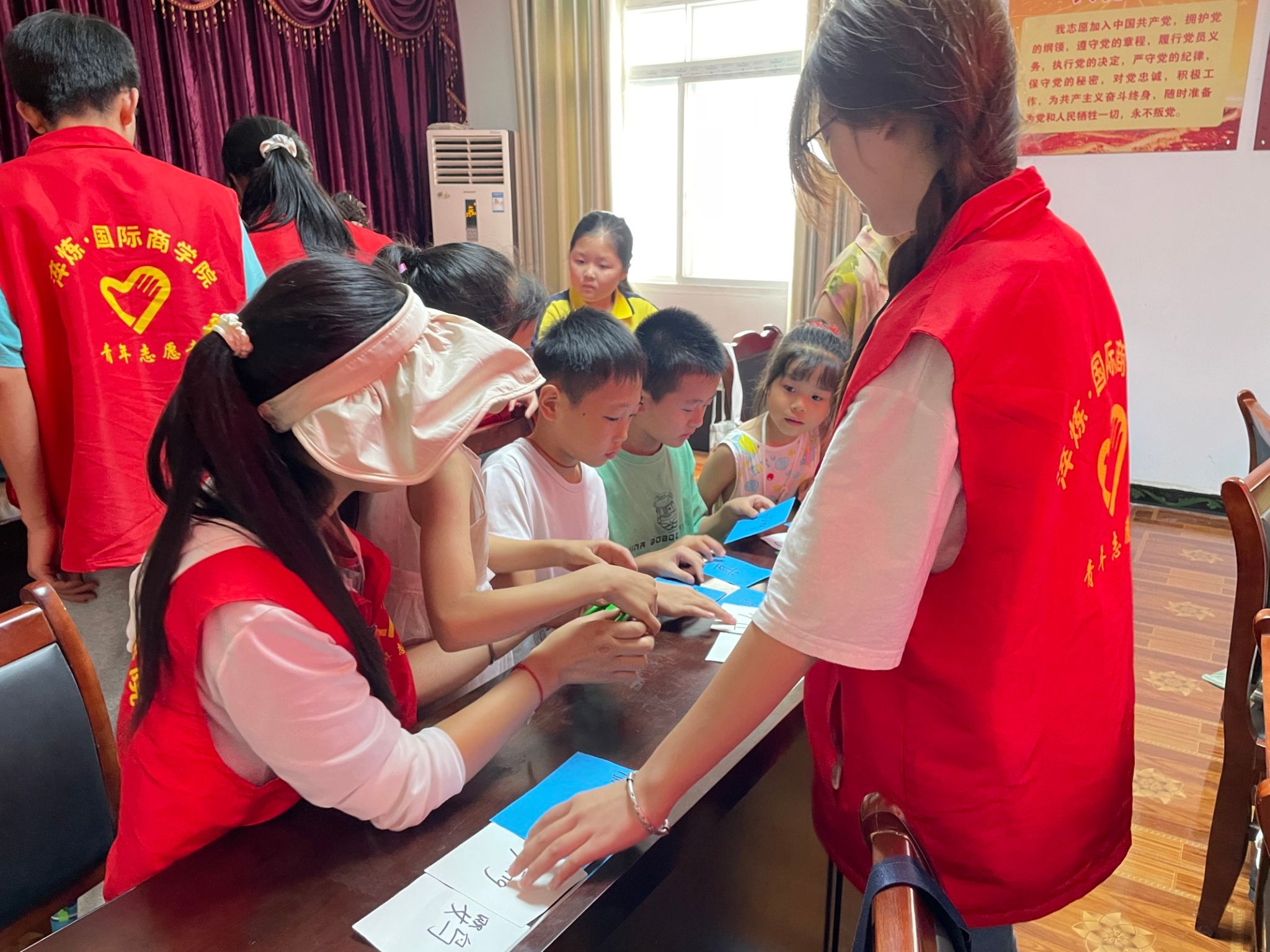 方言,是一个地区经过多年文化沉淀而形成的独具特色的区域性语言体系。它与普通话在口音,释意上具有差异性,为了让小朋友更好了解方言并明晰普通话含义,促进团的成员们选取了一些在日常生活中常见的方言并通过模拟场景的形式为社区孩童提供分析指导,帮助小朋友用普通话去解释、认知方言。这一游戏环节中,社区小朋友踊跃参与,不因一时未被点到回答问题而沮丧,亦不因一刻回答错误而囿于困顿,而是主动带着“告一哈”的态度去找寻“果果们”解疑答惑。“果果们”与小朋友的积极互动是一次次双向奔赴的过程,在愉悦欢快氛围下,这个小活动被缓缓按下结束按钮。