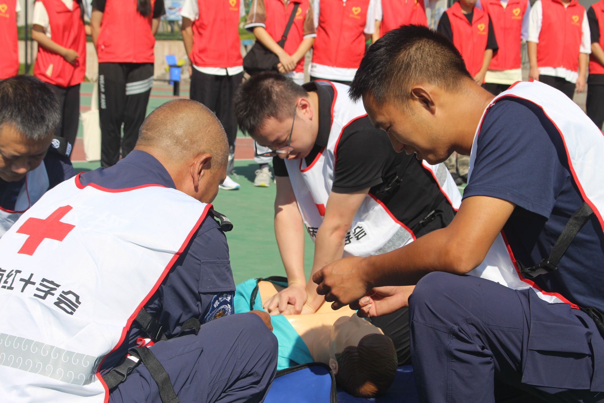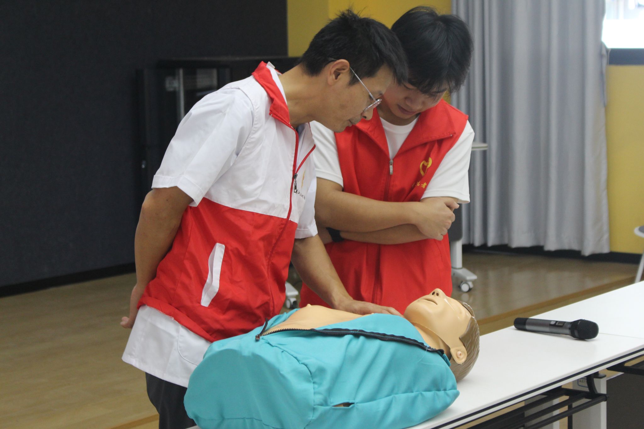 9月7日,綦江区中医院急诊重症医学科副主任贺晓飞来到培训活动现场为志愿者们提供指导。贺主任以理论讲授、现场演练、实践操作等方式进行授课,重点讲解心肺复苏、海姆立克急救、创伤救护等急救课程,相信经过今天的学习,同学们能以更专业的方法应对特殊情况。同时,贺主任肯定了移通学院的校园红十字工作,赞扬了同学们积极参与,普及应急救护传统的优良品质,并表示希望移通学子在今后的志愿活动中积极宣传红十字精神。