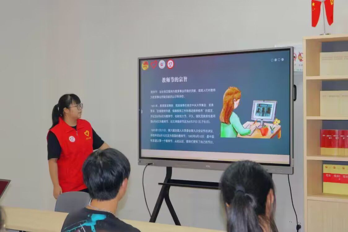 九月是一个特殊月,是一个学期的起点,也是为师者的专属月份。每当打开记忆的封匣,里面总会有几位和蔼的身影浮现在脑海,那身影曾陪伴代代青年度过了一段又一段青涩而又努力的时光。那是师者们的身影。饮其流者怀其源,学其成时念吾师。在这个特别的月份里,淬炼商学院青年志愿者协会“花果”志愿服务专项支队召开教师节宣讲培训。本次活动培训由淬炼商学院青年志愿协会团总支学生副书记杨星元、干部何国庆主讲。分别从教师节的由来,宗旨,意义三个方面进行了详细地讲解。