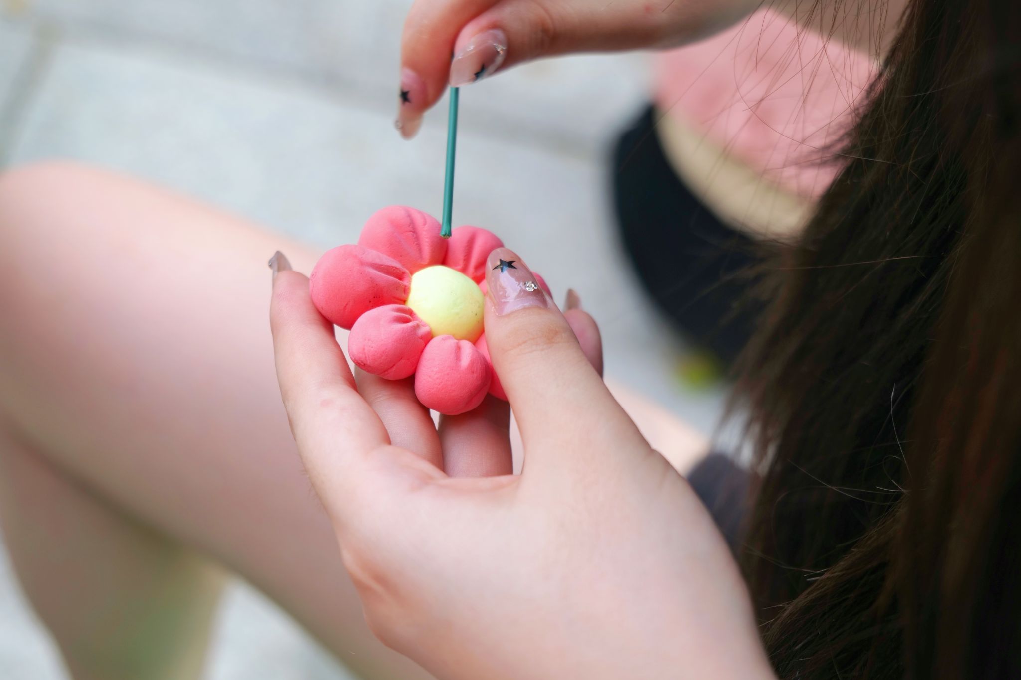 在天空书院外,和同学们一起,制作“永生花”