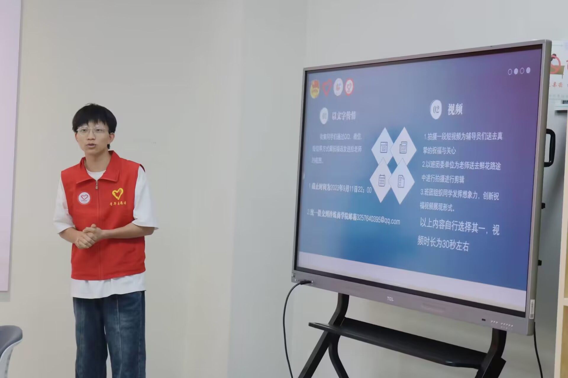 此次“九月忆恩师,礼颂引路人”——季秋礼赞教师节特色活动与“花果”志愿服务培训专项支队进行联动,以“尊师重道”为主题,“感恩师情”为立足点,为22级21个班团负责人开展宣讲培训。一生光阴,四季流转,教师们以一生为单位,平凡中创造非凡,奉献自己的青春,在为国家培养人才的第一线履行自己的使命和责任,力求为学生提供更好的、更高质量的教育水准。此次培训活动,分别从教师节的由来、宗旨、意义三个方面向各个班团进行了详细地讲解,旨在加强各班团感恩师情的意识。山仰止,水奔腾,百花欣喜声,只为桃李笑春风,不眠深夜更。