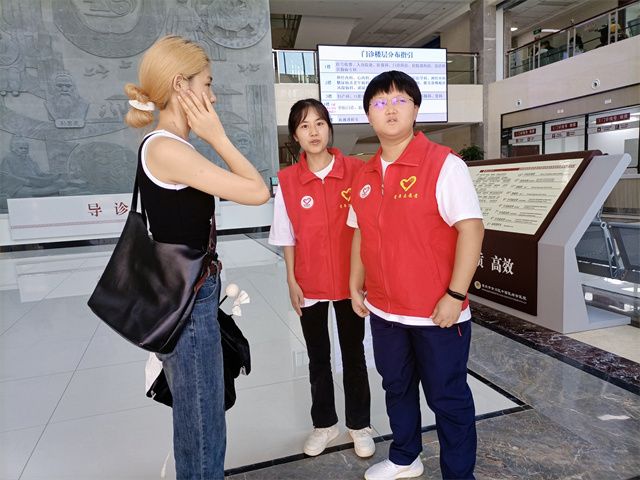 作为导诊志愿者,主要任务就是协助患者找到正确的科室和医生,解答就诊患者的疑问,积极为患者提供帮助,询问患者需求,并根据患者的情况提供相应的导诊服务。志愿者在经过医院工作人员具体详细地培训后,熟悉掌握了基本的医疗知识和导诊技巧,能够为患者提供准确和及时的帮助。在医院的大厅和门诊区域,志愿者们身穿统一的志愿服,以便患者能够轻松的找到志愿者。
