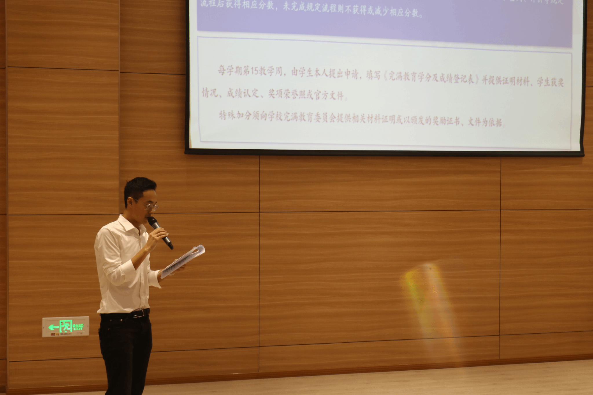 运营管理团队负责人黄恩祈从完满教育(实践板块)学分管理办法总则、完满教育认定范围及基本原则、完满教育学分及成绩管理、完满教育学分及成绩认定标准四个方面展开细致讲解,以实例+解读的形式快速的让老师们理解各项规定和要求,让各组织单位活动管理员们对完满教育学分有进一步了解,对完满教育学分认证工作有清楚的认知。