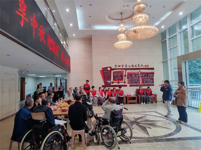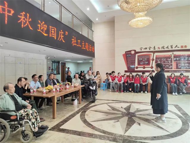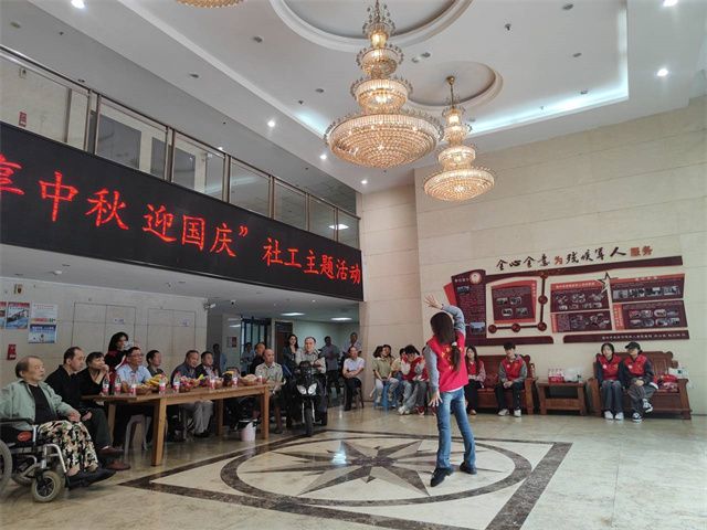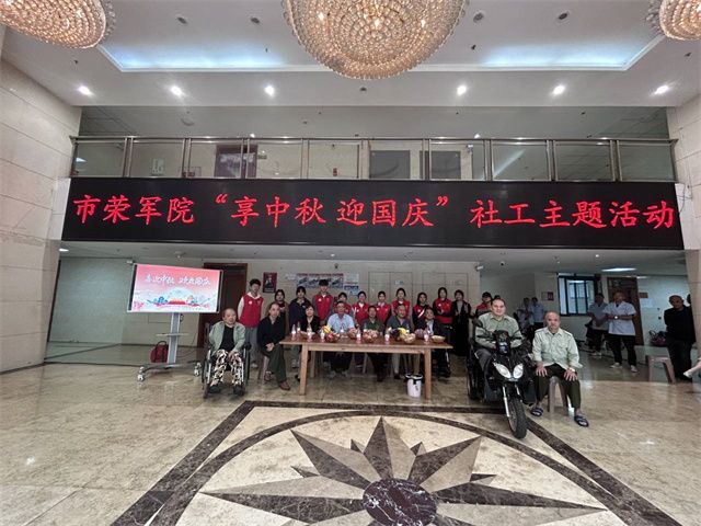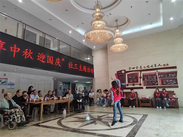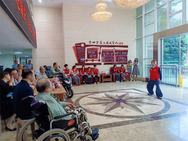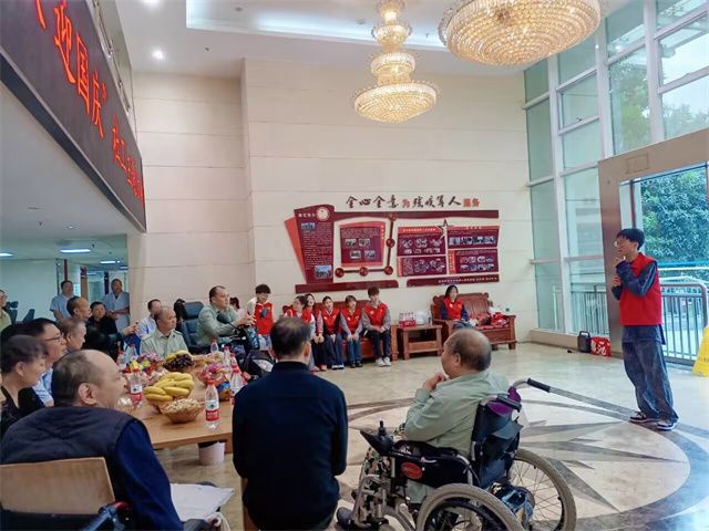 此值中秋、国庆之际,为进一步弘扬中华民族尊老敬的传统美德,2023年9月27日下午,淬炼商学院青年志愿者协会“光芒再放”关爱老兵志愿服务专项支队联合Venus艺术团前往重庆市荣军院为荣军院的老兵们带去了一场精彩的文艺汇演。