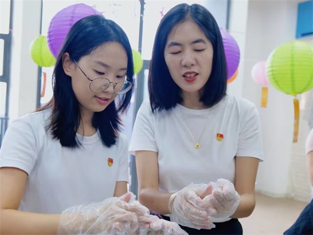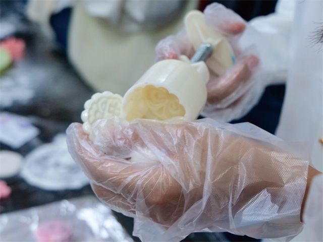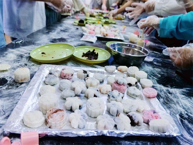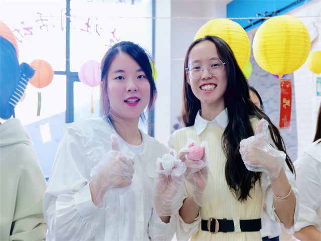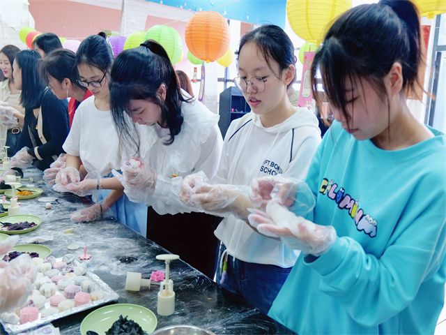 “搅、揉、捏、搓、揪、压、舀、放、包、挤”,每个人都化身为月饼师傅,在一片欢声笑语中,一个个精致的月饼呈现在大家的眼前,现场其乐融融,弥漫着一派欢乐的气氛,体验者不一样的中秋氛围。参与活动的学生表示:“这是自己第一次动手做月饼,看到专属于自己的中秋月饼烘培出来之后,心里十分激动和高兴”。