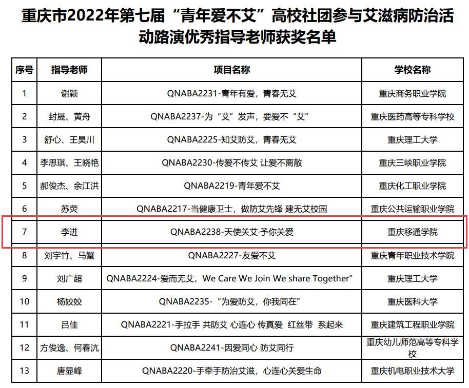 《重庆市2022年第七届“青年爱不艾”项目路演优秀项目与优秀指导老师获奖名单》