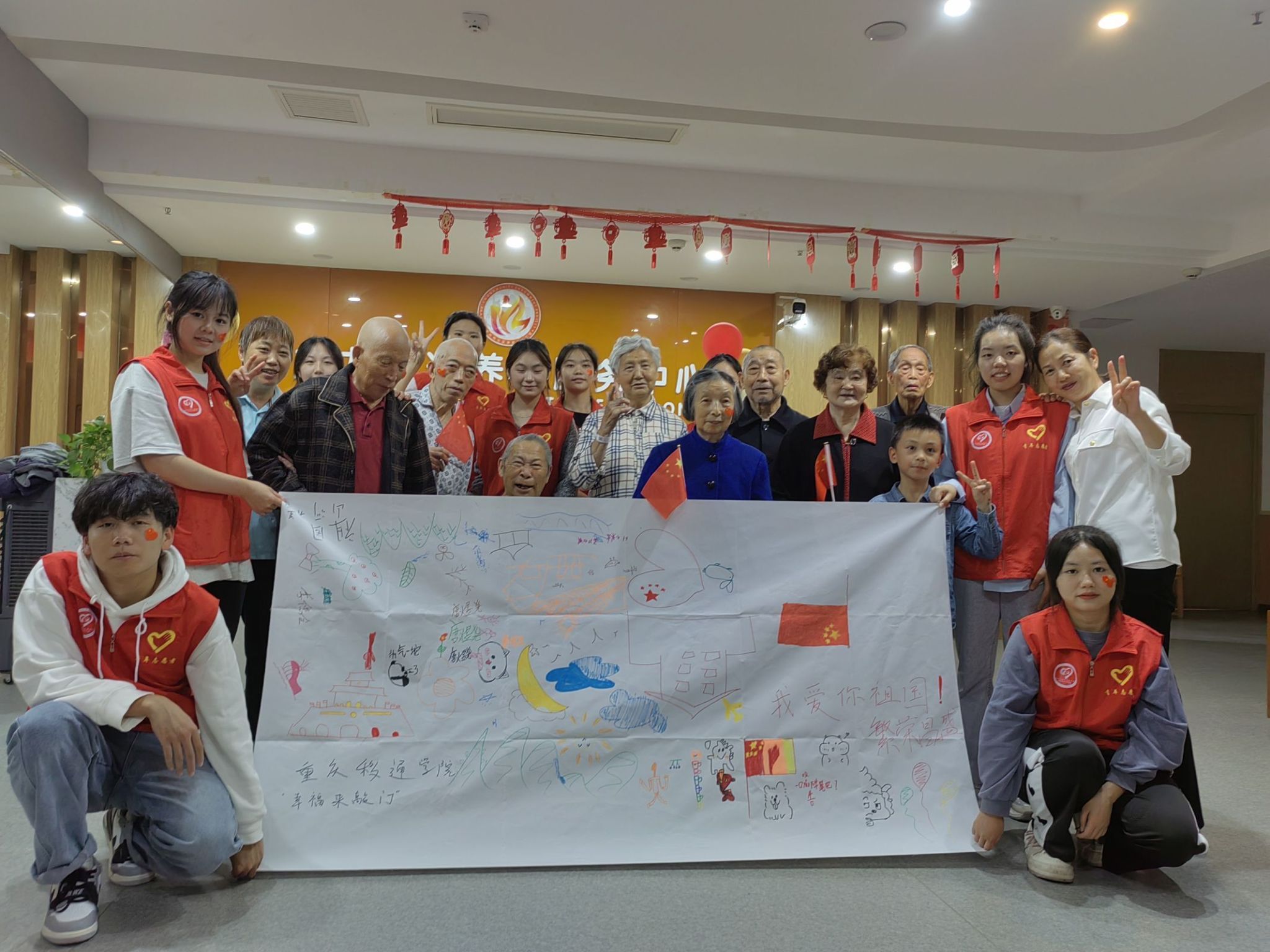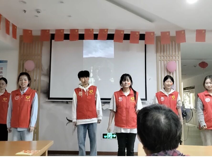 “情系国庆节,爱满养老院”,为弘扬“敬老爱老”的传统美德,增强老人的生活幸福感让养老院的老人们度过一个欢快的国庆佳节。重庆移通学院通信与信息工程学院“幸福来敲门”关爱社区空巢老人志愿服务专项支队于2023年10月14日下午开展“情暖夕阳,与国同庆”活动,志愿者们走进乐养康老养老院,与老人们共庆祖国华诞。此次活动共计参与人数40余人,受益人数50余人。
