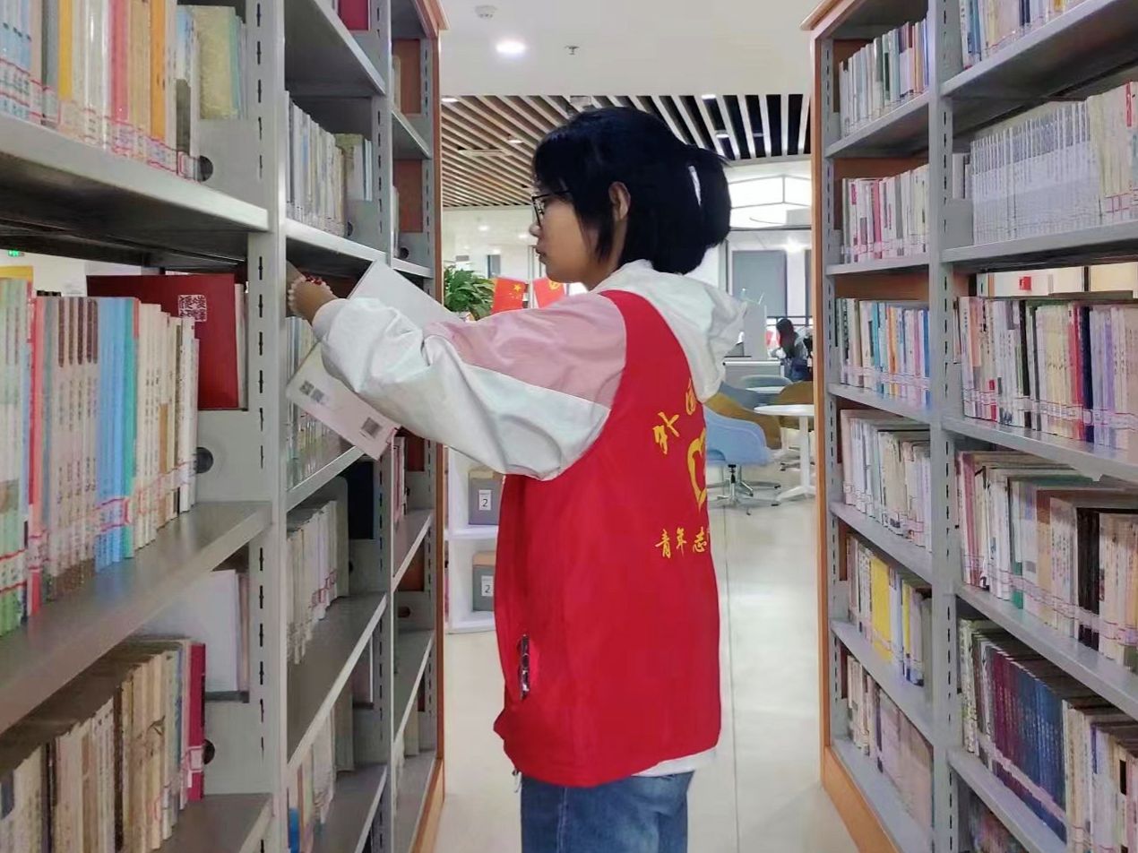 书籍是人类获取知识的源泉,是人类进步的阶梯。为充分发挥图书馆公共文化功能和作用,改善借阅室环境,帮助广大读者更好地查阅书籍,促进形成“人人爱读书,人人读好书”的良好氛围,同时锻炼志愿者的动手服务能力,在服务读者的同时弘扬志愿服务精神,激励更多的移通学子参与到志愿服务中。10月18日,外国语学院青年志愿者协会“一件倾心”薪火志愿服务专项支队于合川图书馆开展“轻掸浮尘,共沐书香”第2期图书整理主题志愿活动。