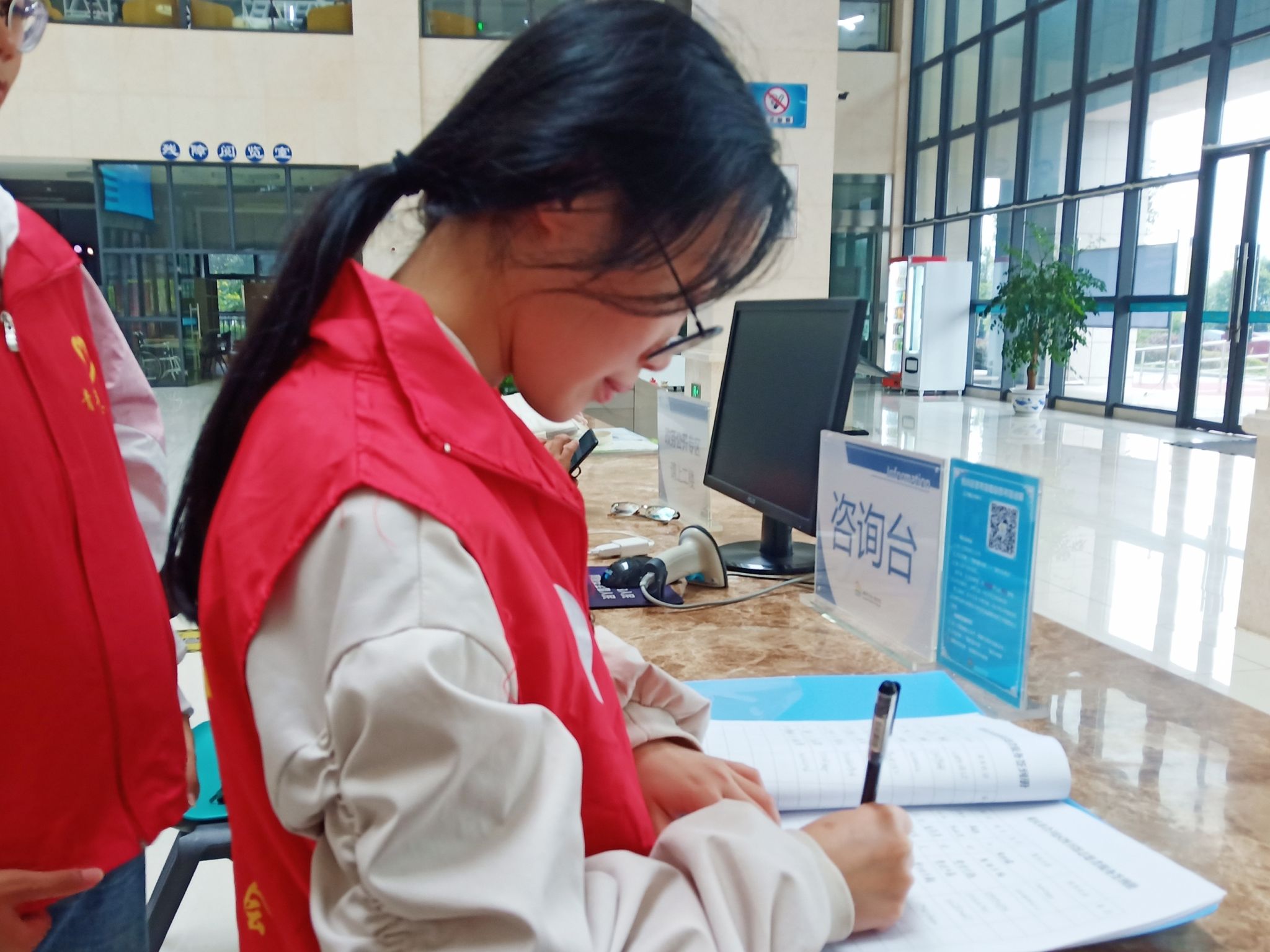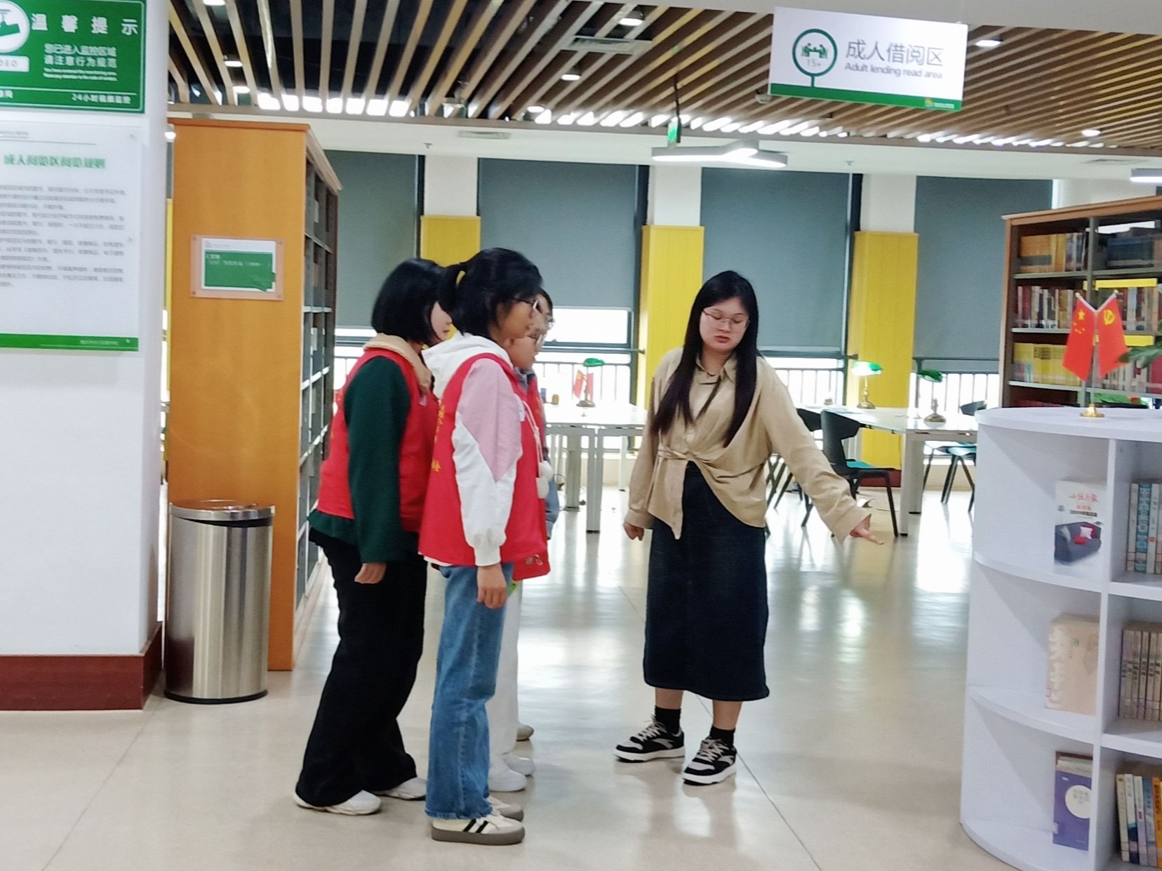 整理图书活动开始前,志愿者积极与合川图书馆负责人沟通,做好准备工作。下午三点,志愿活动正式开始。同学们首先抵达了图书馆的一楼大厅,并在图书馆管理员的带领下很快的熟悉了工作内容。志愿者们主要进行的是阅读者管理方面的工作,旨在为大家营造一个安静、舒适的阅读环境,共同打造和谐“书香”世界。