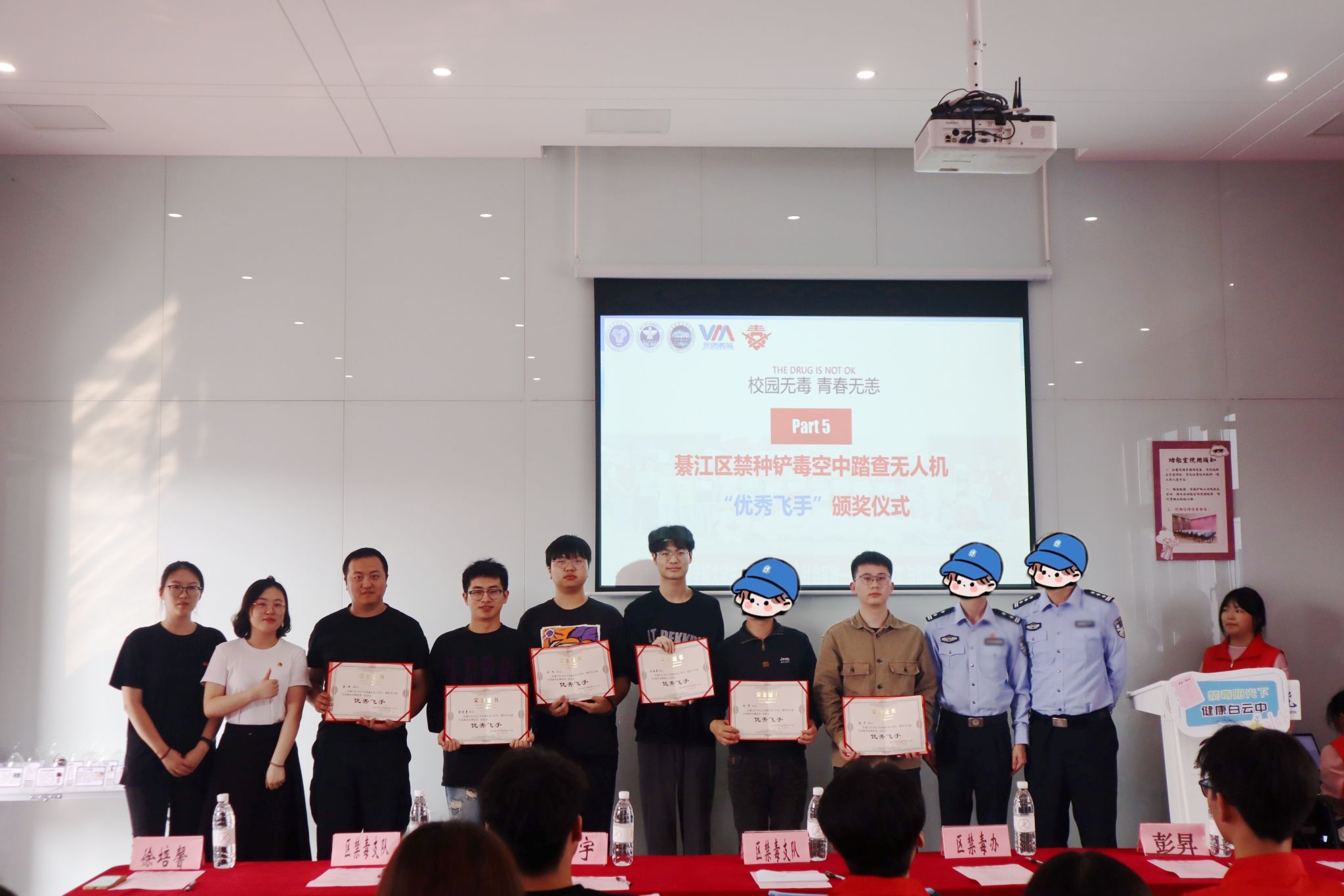 在綦江区2023年禁种铲毒空中踏查行动中,我校UAV FLY无人机社、“e”心禁毒志愿服务专项支队与綦江区禁毒支队通力合作,前往綦江重点地区开展无人机“禁种铲毒空中踏查”工作。现场,綦江区禁毒支队为无人机社指导老师彭昇老师、陈骏豪等同学颁发了“优秀飞手”的奖励证书。近年来,禁毒铲种项目也与新型的科技手段结合,通过无人机的高效探查,使其在禁毒铲种方面做出了巨大的贡献,学校和学院也在此类禁毒工作中迈出了新的一步。