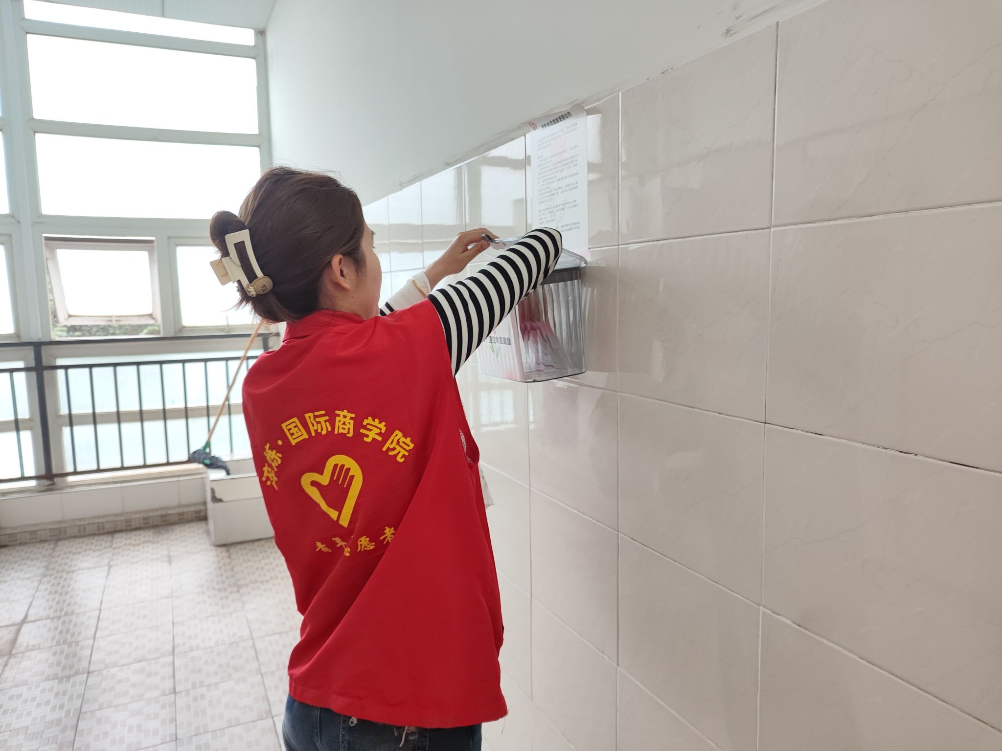 卫生巾互助盒,能够解决女性月经突然来潮的尴尬处境,为生理期女性提供了温暖的关怀与帮助,同时也鼓励大家捐献卫生巾,互帮互助。而它的摆放位置,又为其赋予了更加深刻的意义——拒绝月经羞耻,让女性自己以及广大的男性朋友都能够进一步正视月经,使其不再处于羞耻阴暗、避而不谈的禁忌角落里。关爱女性,淬炼商学院“SHE”关爱女性志愿服务专项支队从不缺席,为构建美好校园奉献力量。