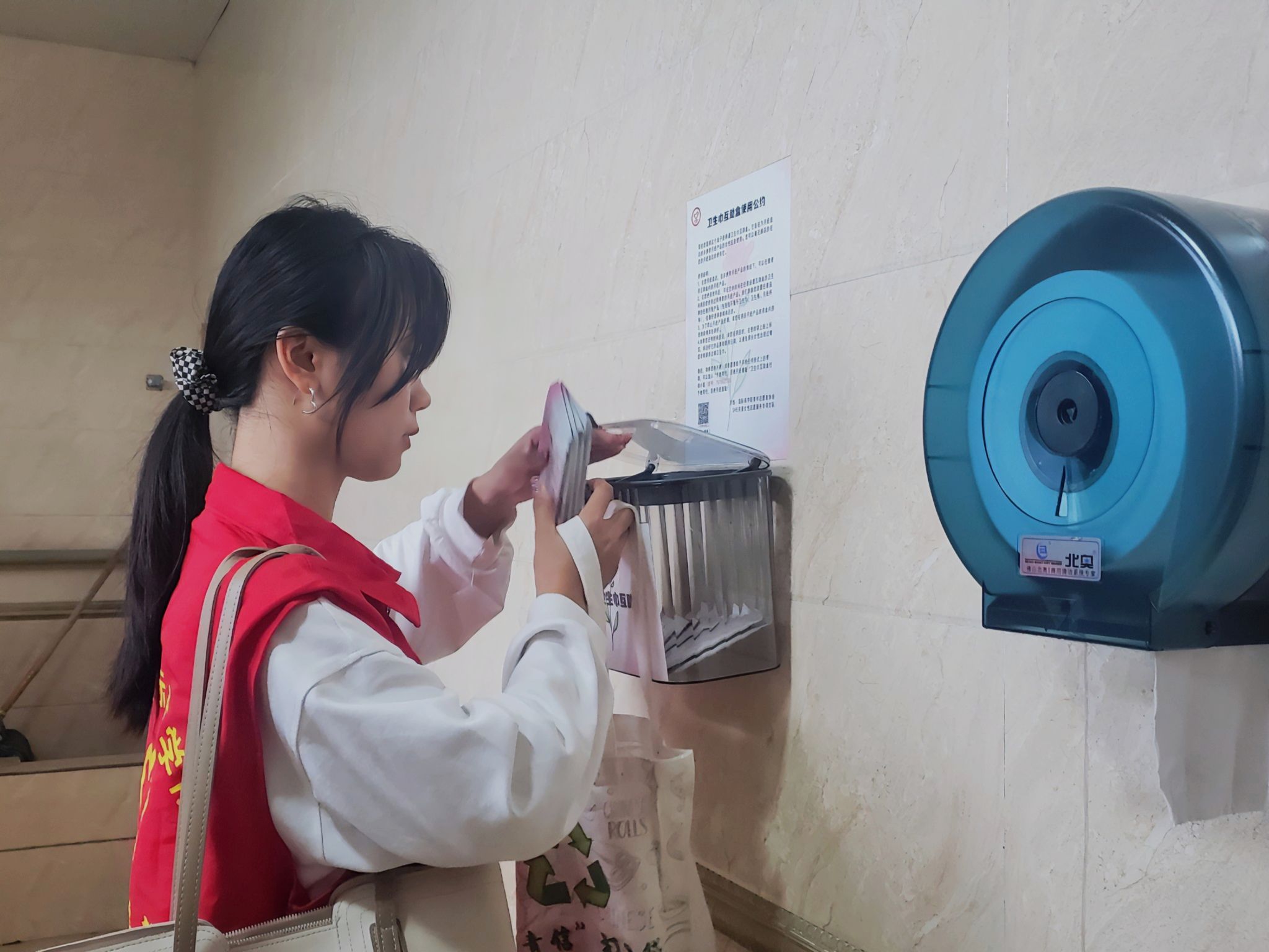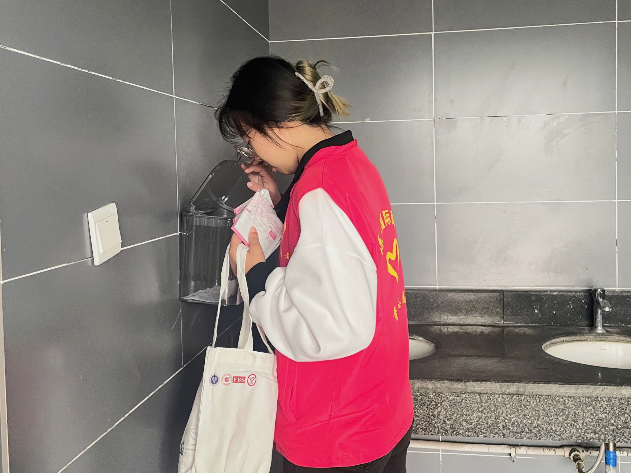 为了解决女生月经突然来临的尴尬局面,营造关爱女性的良好氛围,做女性经期的“守护神”,让全校女性师生自信的度过每一天。重庆移通学院淬炼商学院青年志愿者协会“SHE”关爱女性志愿服务专项支队于10月20日开展了卫生巾补充活动。