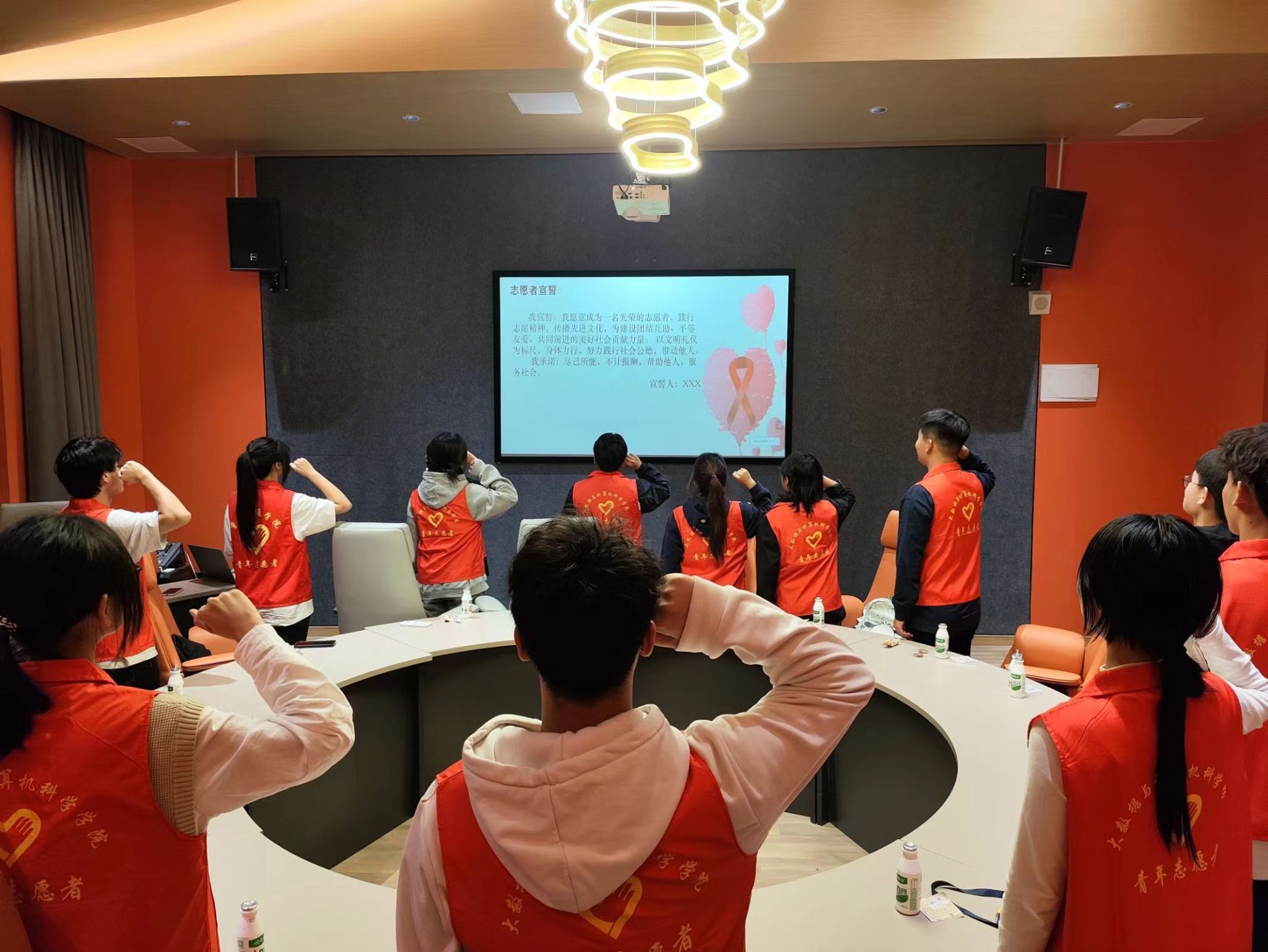 最后,队长邓诗雅带领着大家庄严宣誓。大家身着红马甲,高昂激越的宣誓声中,饱含着志愿者们投身防艾事业,奉献自我的决心,相信在未来,因为他们的出现,天使关“艾”志愿服务专项支队会越加壮大,会让更多的人认识艾滋,抵御艾滋。