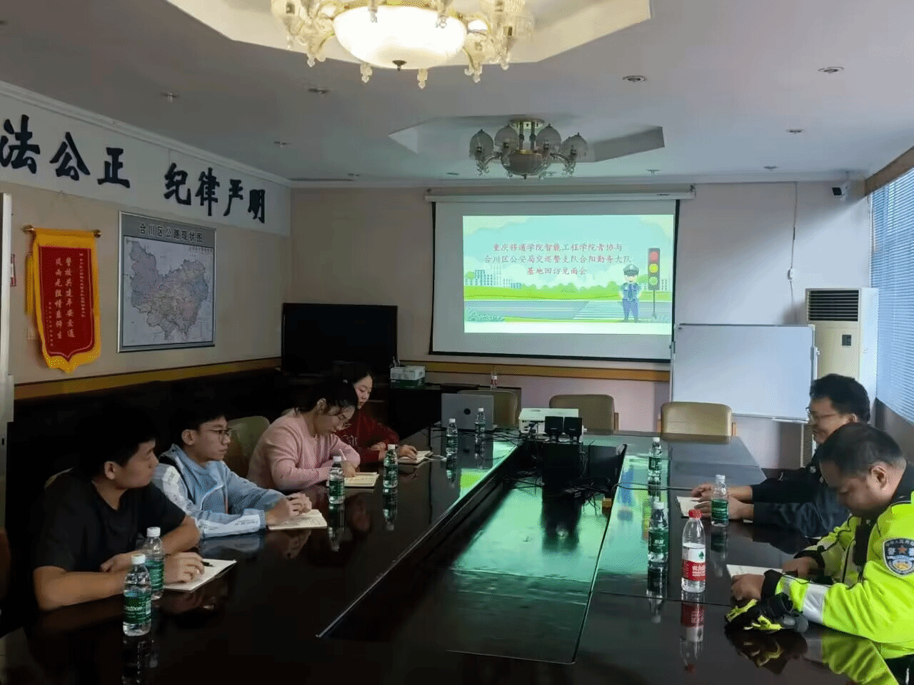为加强与校外基地的合作交流,促进校内外志愿服务活动的联动融合,2023年10月20日下午2点,智能工程学院青年志愿者协会“知交规,行安全”交通文明志愿服务专项支队到合川区公安局交巡警支队合阳勤务大队进行基地回访。本次座谈会由智工青协指导老师郭超然老师带领志愿者们与合川区公安局交巡警支队合阳勤务大队进行工作对接以及进行新学期的工作安排。