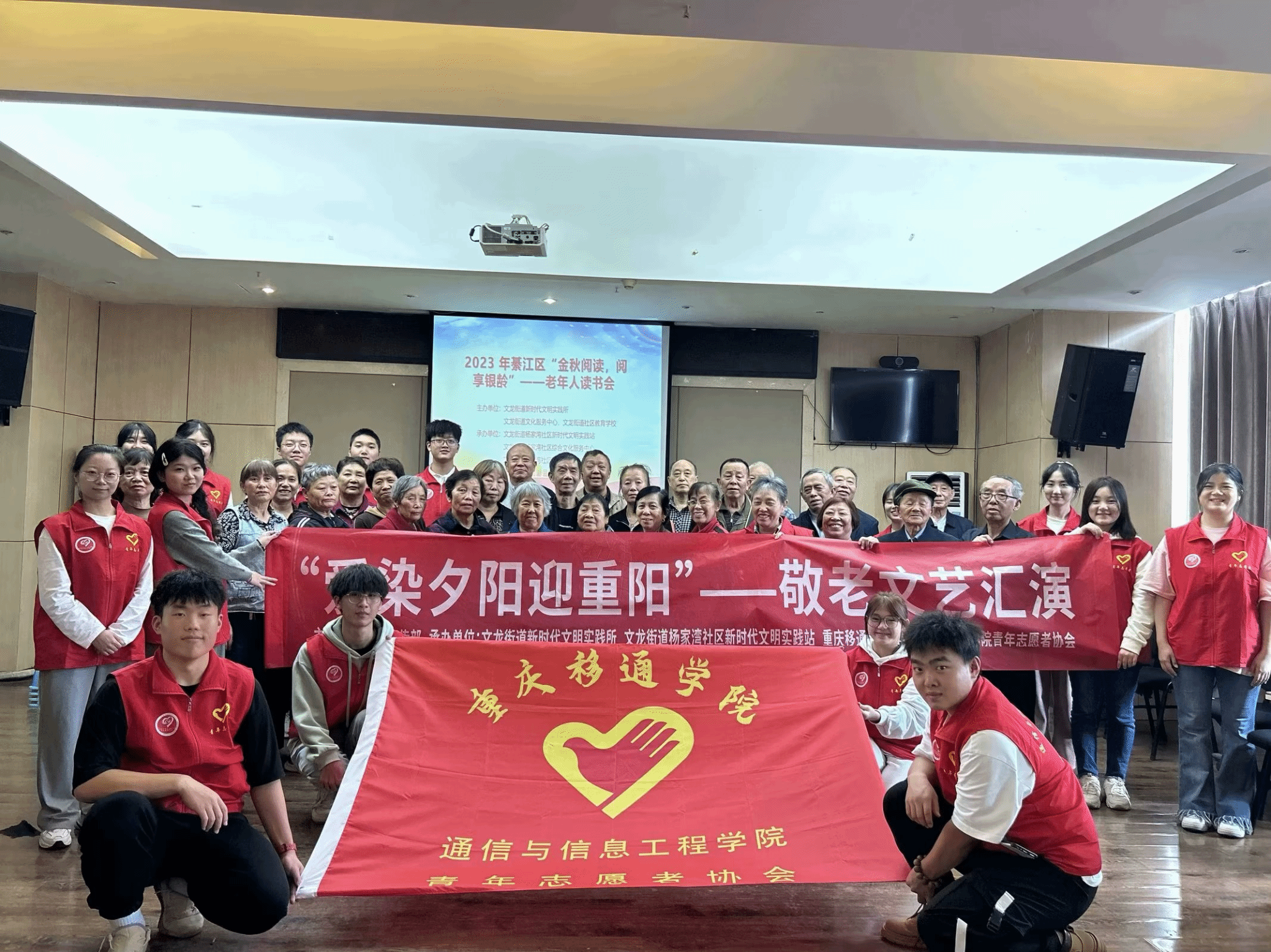 爱染夕阳迎重阳,欢度佳节暖金秋。为弘扬中华民族尊老敬老的传统美德2023年10月18日-21日,通信与信息工程学院青年志愿者协会与star音乐根据地社团于千家福养老院开展“情暖金秋,爱在重阳”重阳节主题活动之敬老文艺汇演系列活动。此次活动共参与120余人,受益人群140余人。