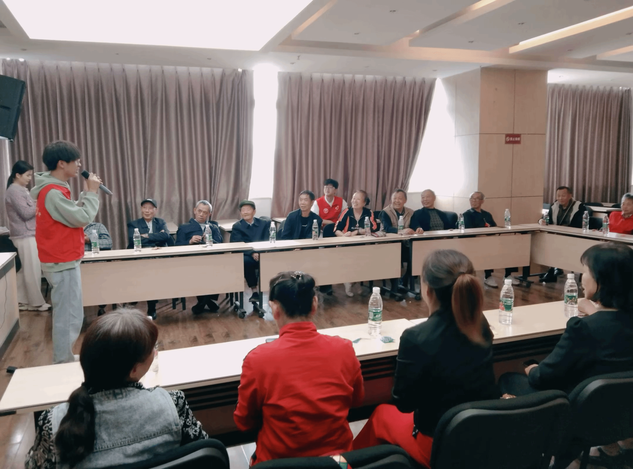到达杨家湾社区后,志愿者们便向老人们带去问候与关心,并为老人们佩戴好寄托着美好祝愿的香包。随后star音乐根据地社团进行《常回家看看》,《映山红》等歌曲节目表演,老人们和志愿者们都沉浸其中。志愿者们还准备“歌谜猜猜猜”游戏互动环节,和老人一起玩猜歌谜游戏,看着老人们在游戏活动里绽放出真挚的笑容,让人内心充满温暖。