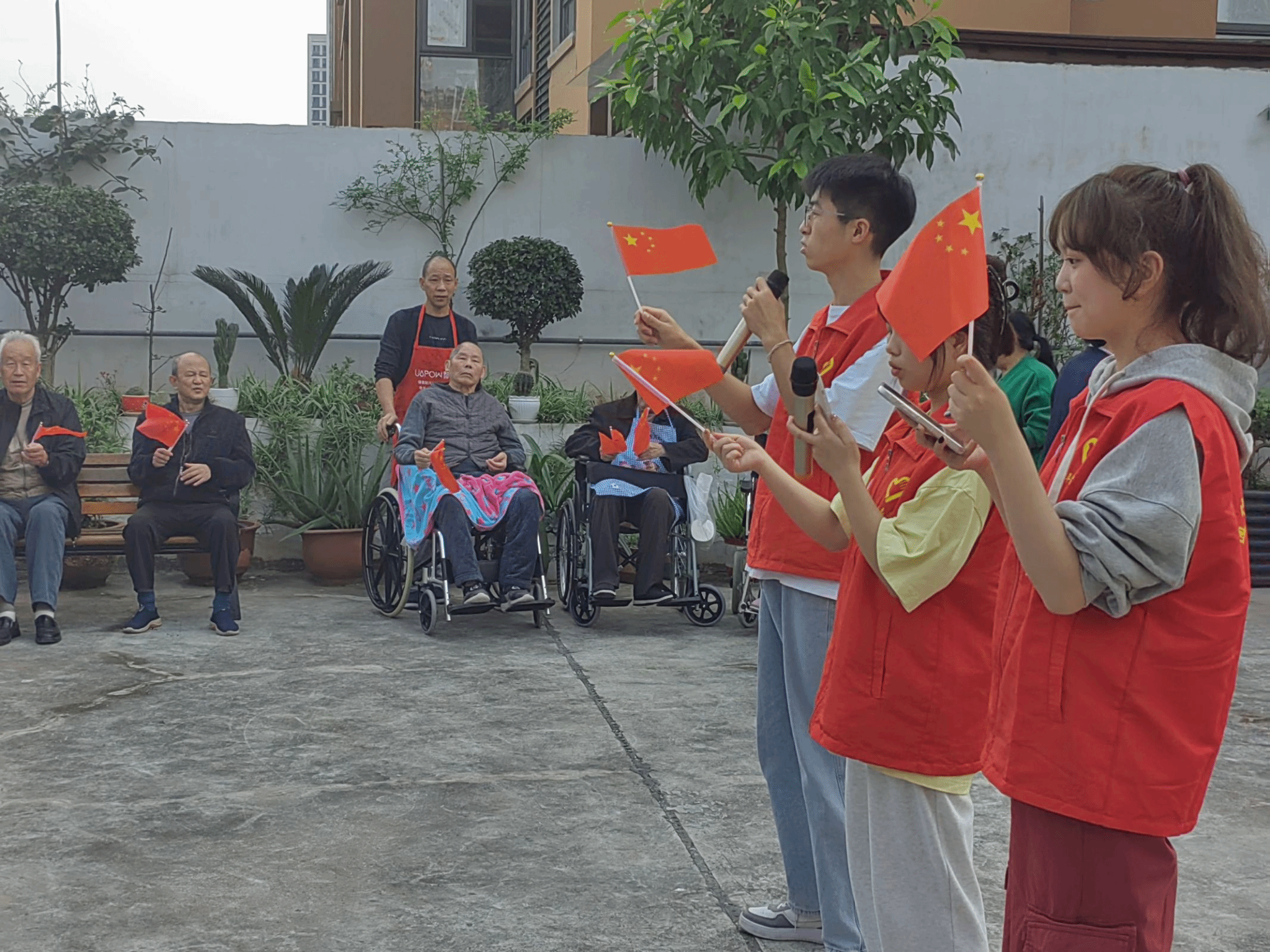活动伊始,同学们提前到达千家福养老院,并拿出事先做好的香囊与重阳糕赠予老人们,以表达真诚的祝福。此次活动将分为三个环节开展:重阳节主题故事分享、主题文艺汇演、绿植播种。