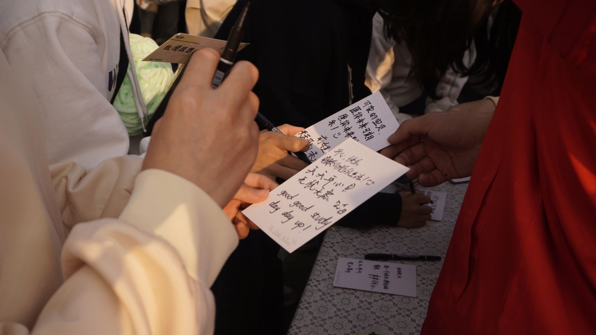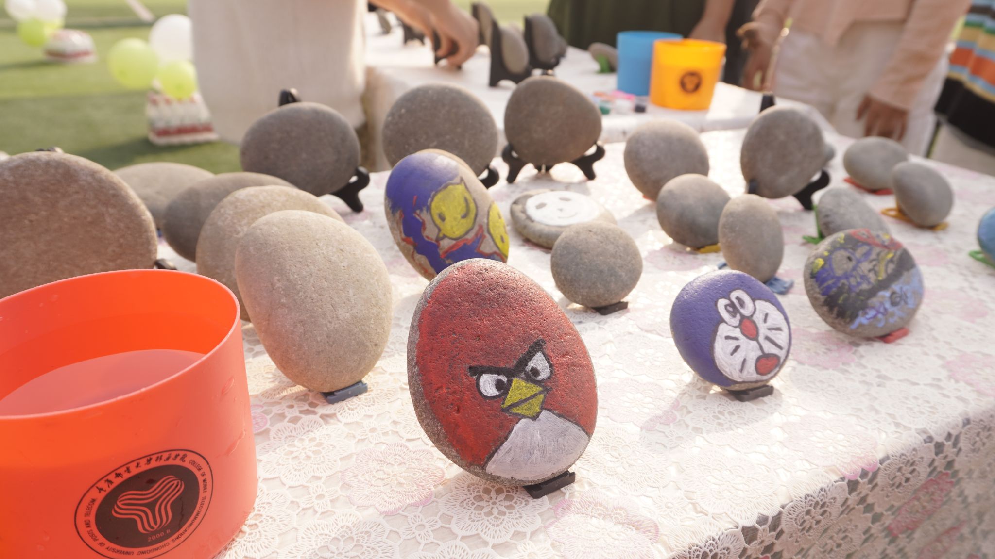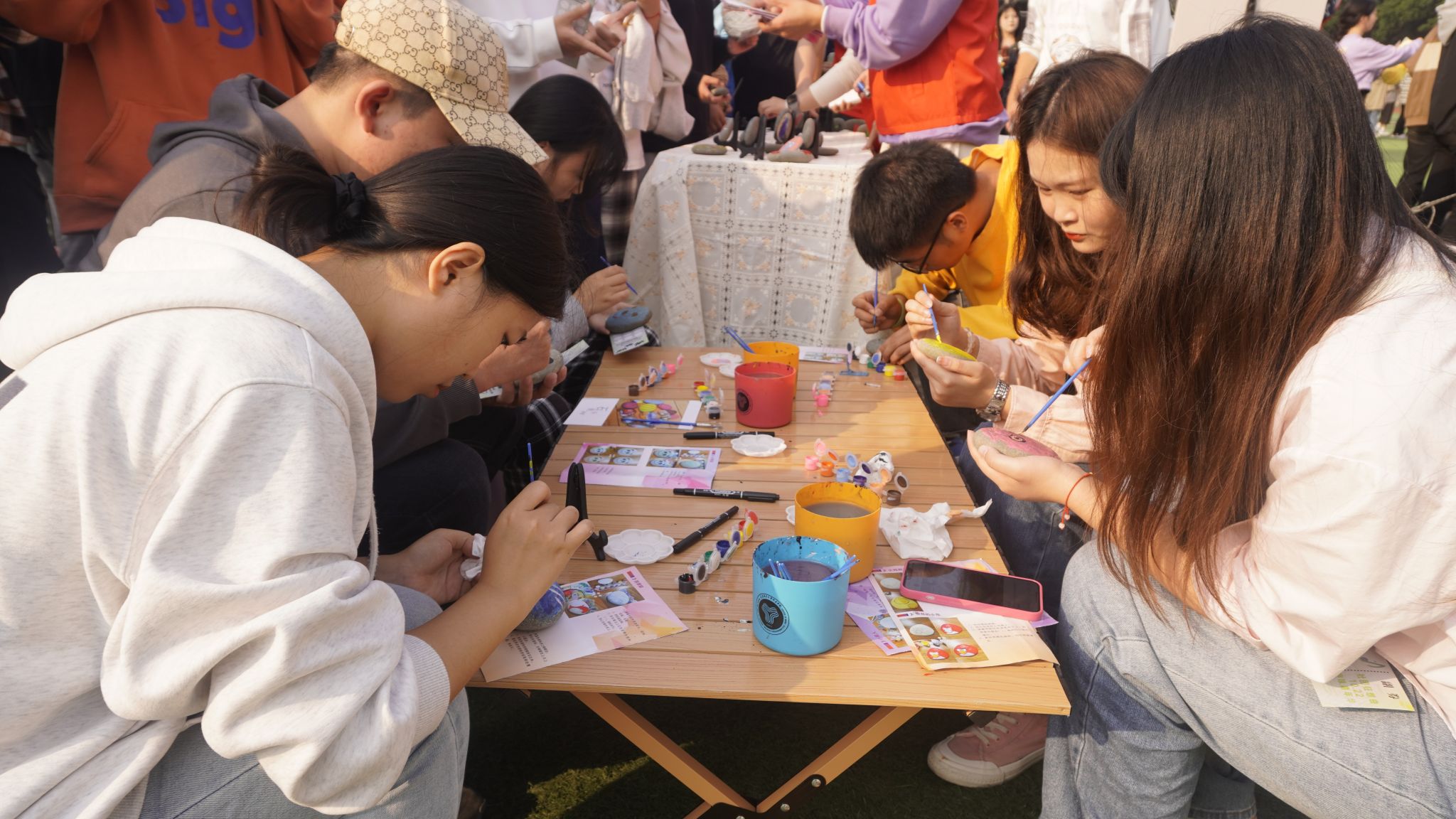 在“橙”心留影站中,大学生们通过镜头表达自己的想法,积极展现新时代大学生的责任与担当;用简单的语言在明信片上献上最真挚的祝福,用文字温暖小朋友的心灵,他们用行动贯彻志愿精神,以实践承担社会责任,参与者们积极参与的身影构成了一道最靓丽的风景线;除此之外,参与者们用画笔和颜料在石头上进行彩绘,艺术与想象碰撞的火花在石头上迸发,活动现场中,同学们充分发挥想象力,用颜料留下志愿的足迹,最后,带上成品移步“音”你聚爱打卡馆打卡。