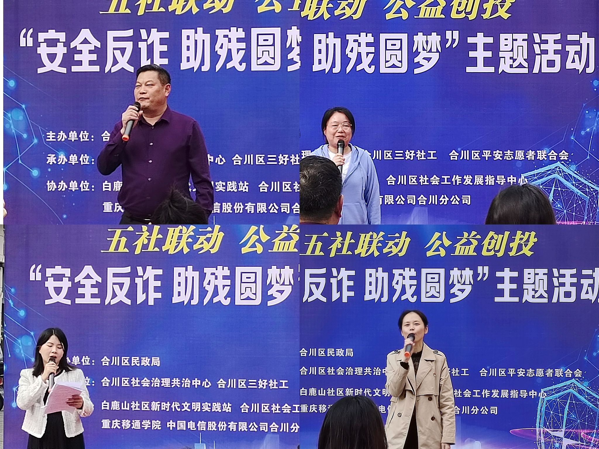 随着互联网技术不断发展,电信网络诈骗案件呈现出高发趋势,给人们的生活和工作带来严重威胁,特别是对于老年人、青少年和群众基础薄弱地区,更具有挑战性。反诈宣传是预防电信诈骗的有效手段之一,也是落实“以人为本、预防为主”的基本原则的必要措施之一。为加强反诈宣传工作,提高残障人士的反诈意识和防范能力,2023年10月20日,淬炼商学院“向阳而生”助残筑梦志愿服务专项支队前往白鹿山社区。
