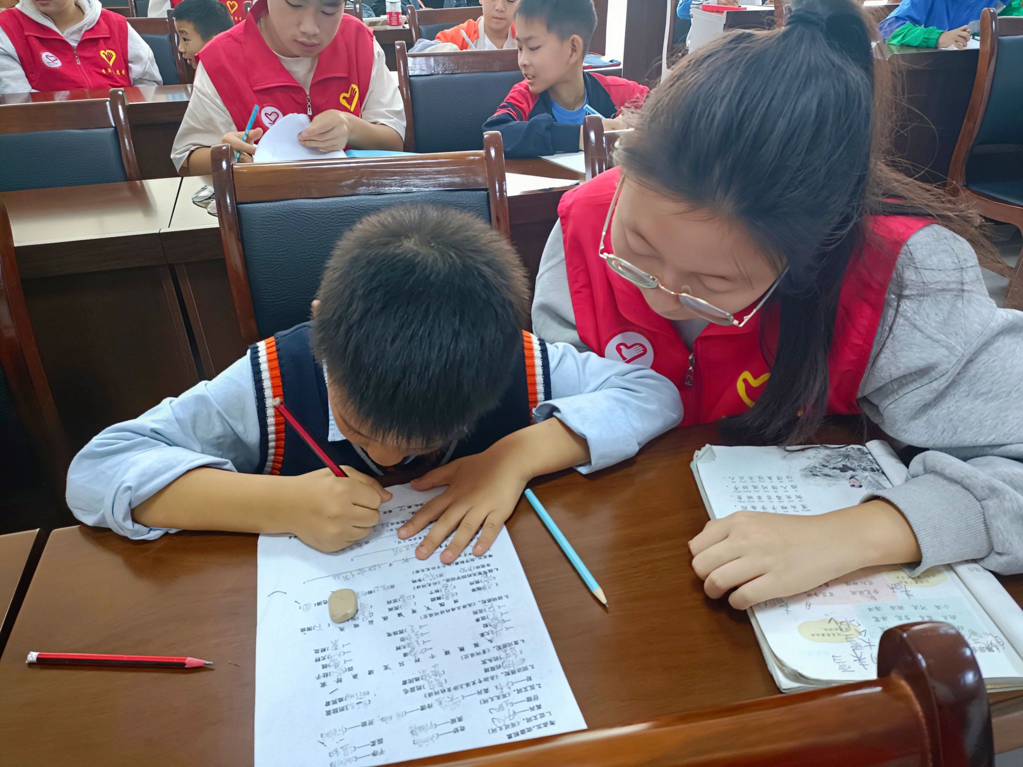 为更好的辅导小朋友们完成作业,减轻家长的负担。2023年10月21淬炼商学院青年志愿者协会爱暖童心小课堂志愿服务专项支队在重庆市合川区石鼓坝社区开展了”伴我童行·作业帮扶“活动。