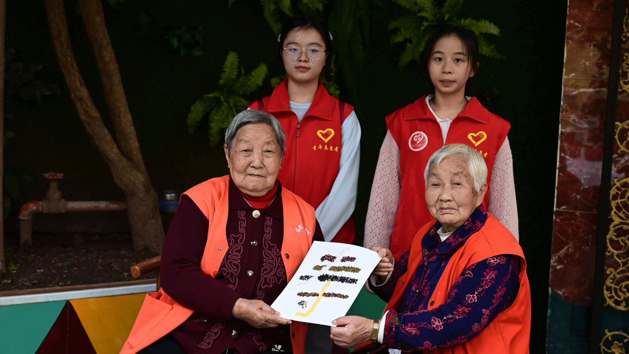 歌曲表演结束后部分志愿者陪同老人们进行五谷画的制作,或帮助老人打扫宿卫生、换洗衣服,以及和老人相互交谈趣事。这是志愿者与老人们相互了解的过程,倾听老人们讲述自己的个人经历,让志愿者们了解到我们今天的生活来之不易;志愿者们将自己在外面读书的情况和家乡的建设和老人们分享。