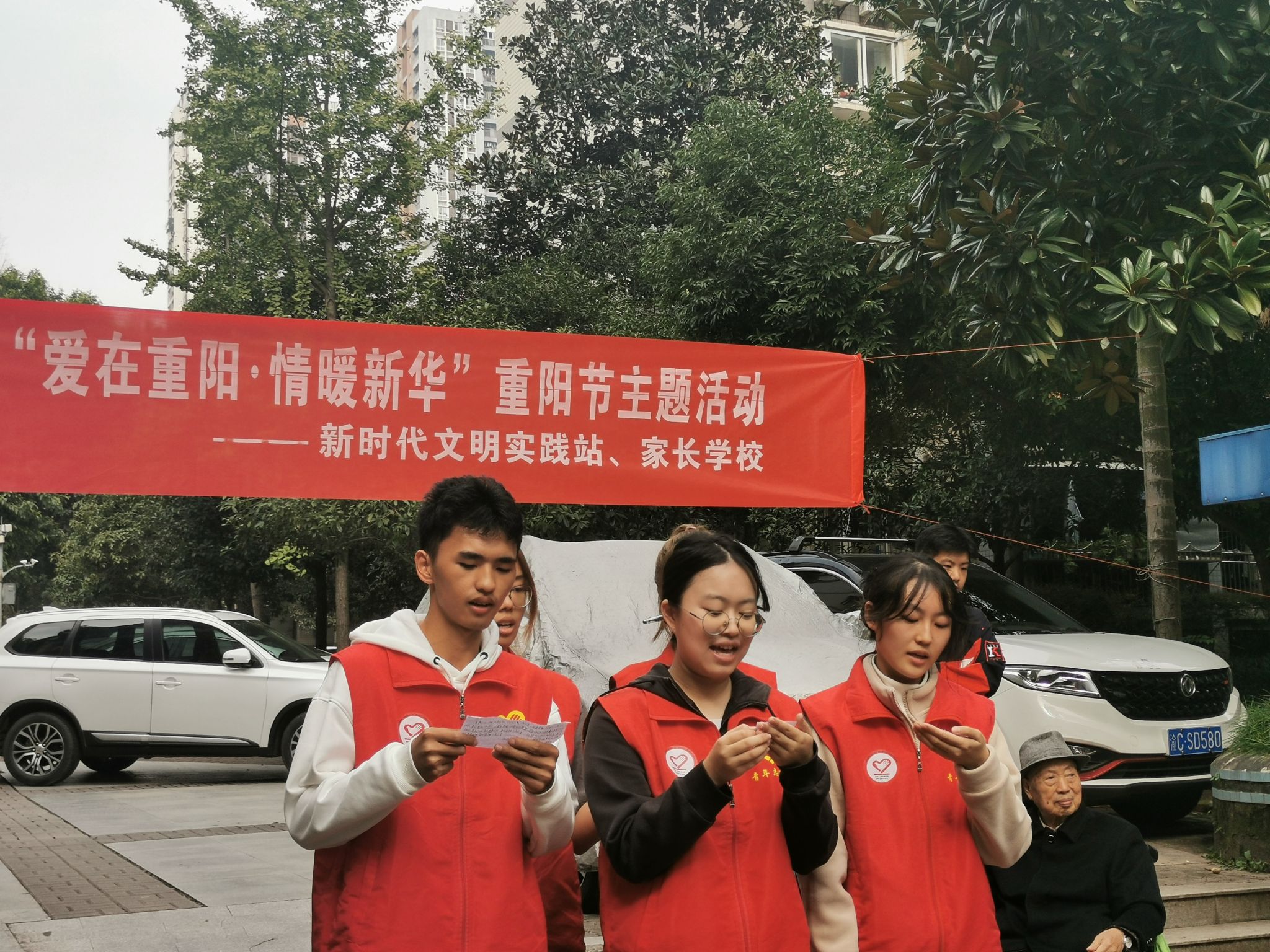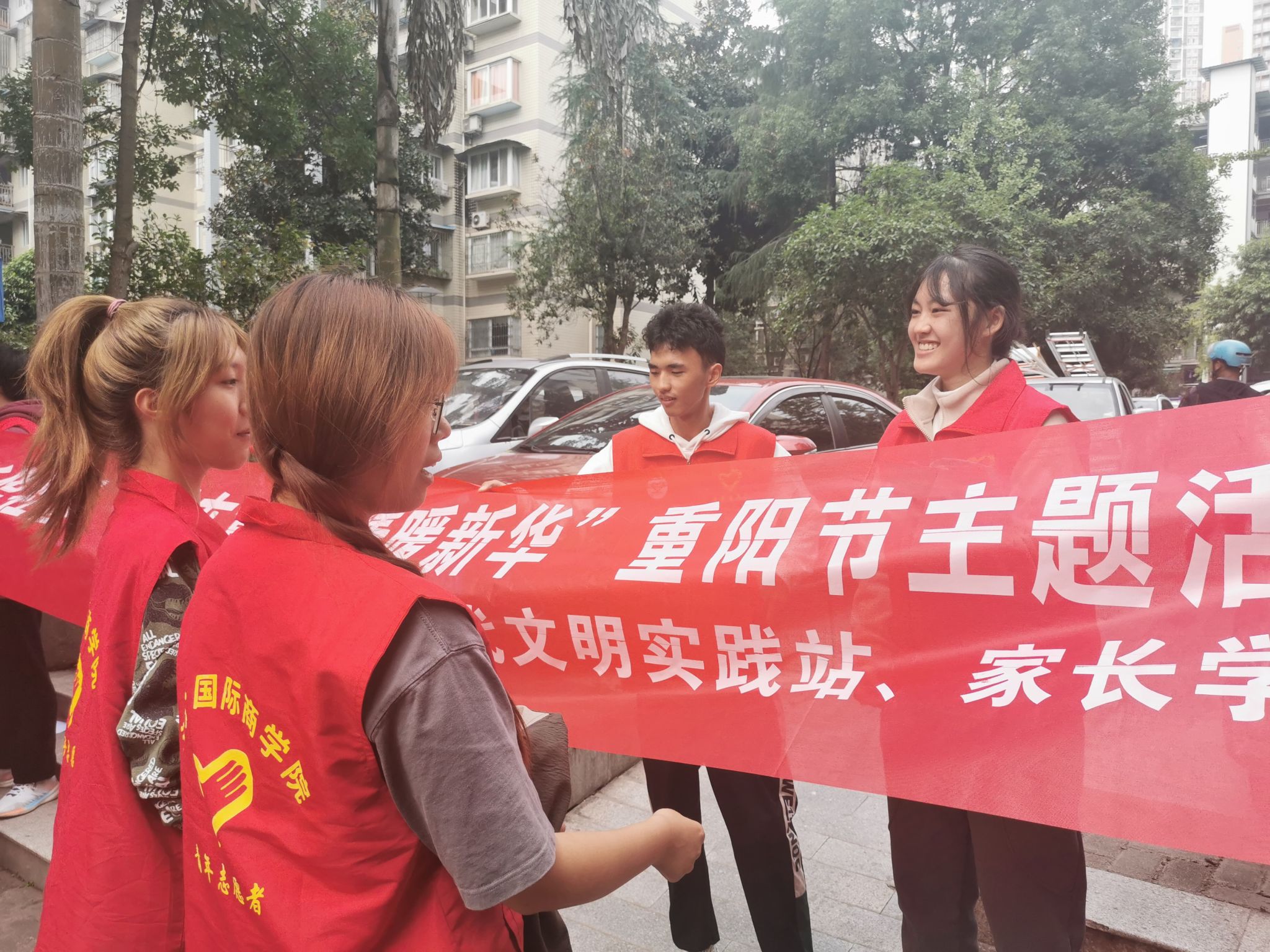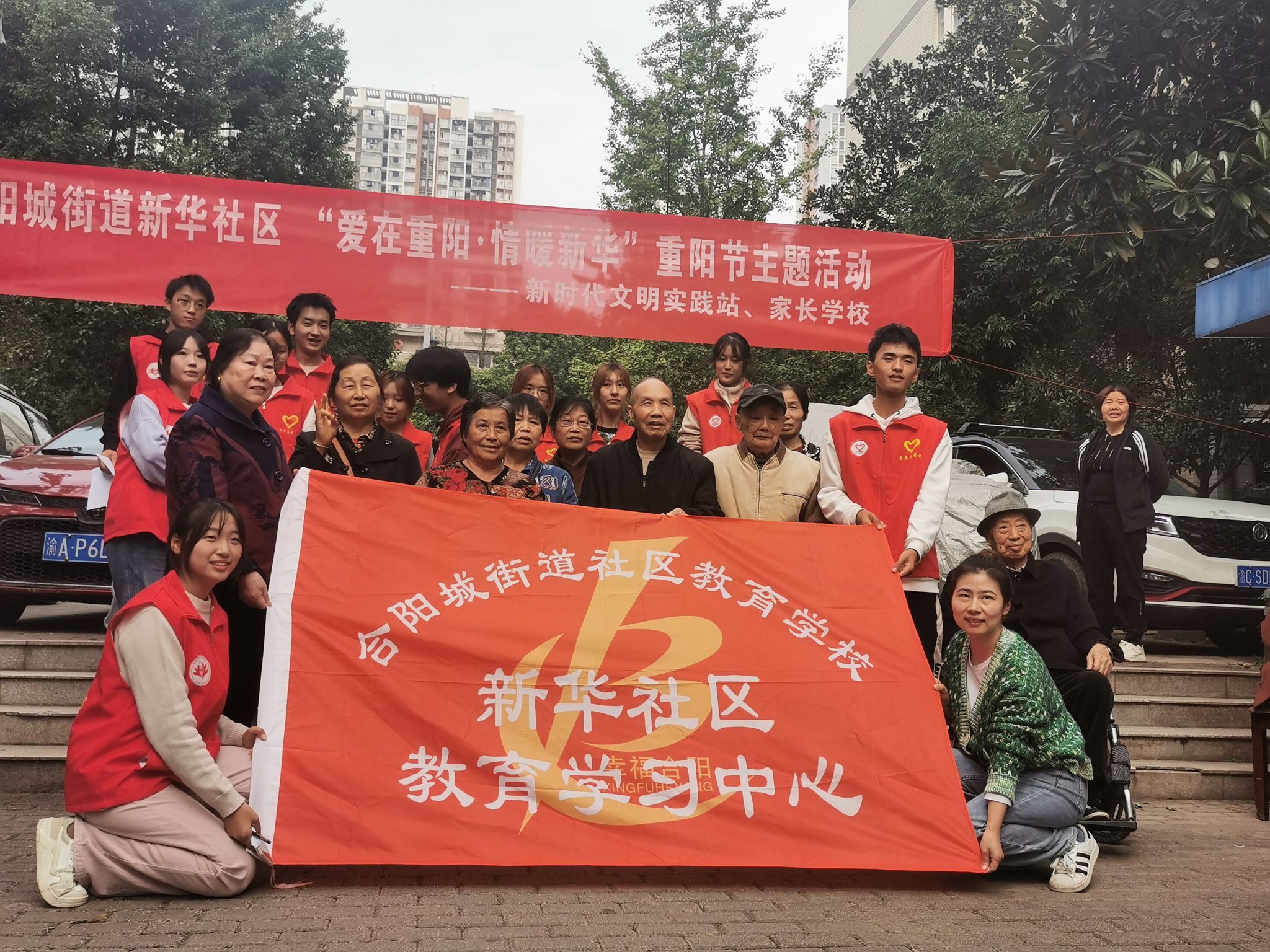 今又重阳,今年黄花分外香。为弘扬中华优秀传统美德,为营造社区爱老、敬老、助老的节日氛围,为给老人们带去快乐、温暖、关心和问候,淬炼商学院“志循绿园”志愿服务专项支队于2023年10月23日与淬炼商学院青年志愿协会总队的成员,共同到新华社区进行了“情暖金秋,爱在重阳”的爱老敬老的活动。本次重阳节的活动中,志愿者们帮助基地的负责人共同开展活动,拉上鲜红的节日横幅、帮助摆放桌子板凳、与老人们同坐在一起,互动、聊天、相伴。