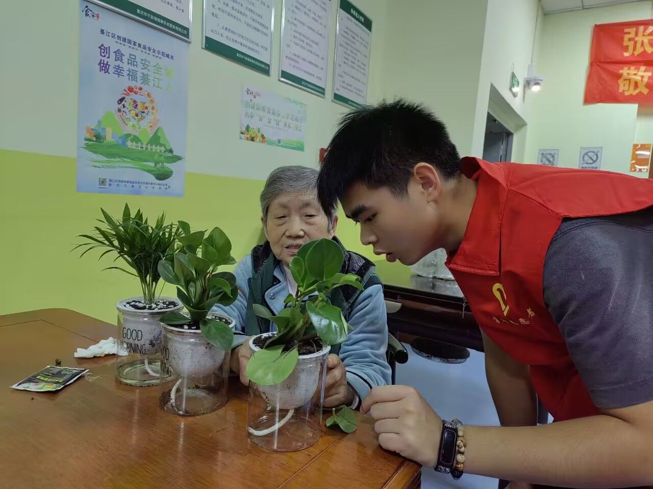 岁月奔涌而下,希望生生不息。志愿者们带来绿植与老人们共同种下,让带着希望的植物生根发芽,把快乐植入心底,把幸福植入生活,把健康植入身体,把平安植入人生。种植过程中志愿者们热心询问老人近来身体状况,主动帮助老人打开心结,用亲切的问候让老人们感受家的温暖,种上幸福树,散开财运枝,吐出健康叶,结出幸福果,志愿者们将对老人们衷心的祝福寄于这野蛮生长的桑榆中。