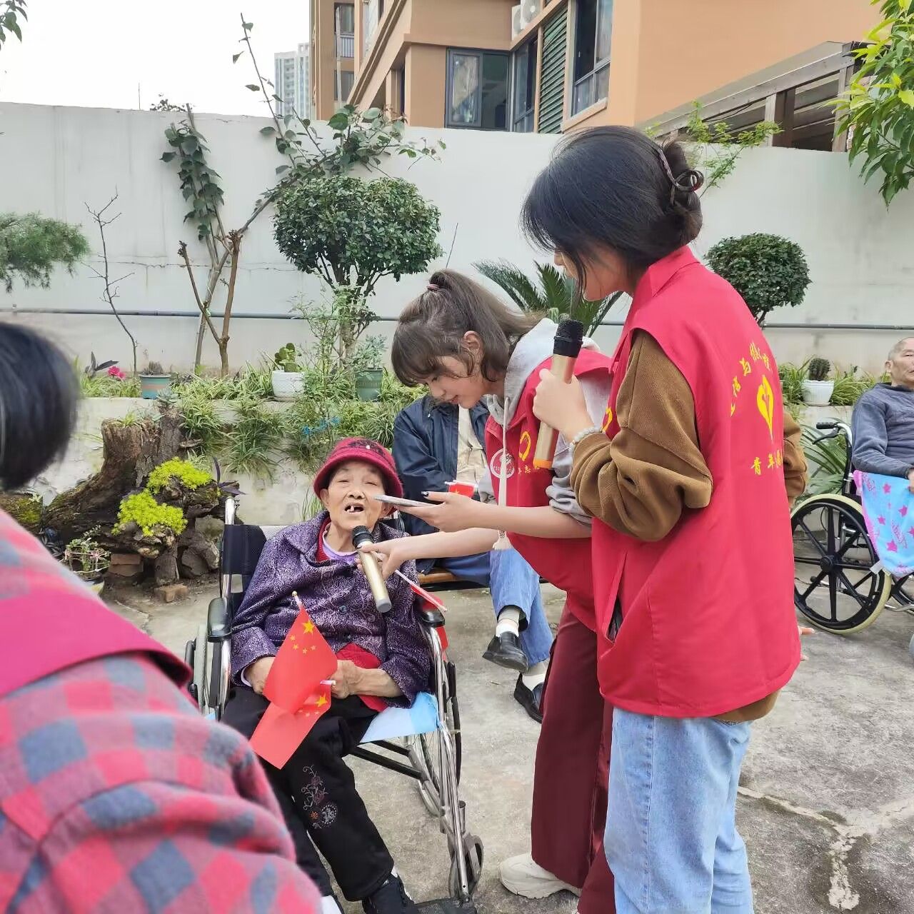 一曲《东方红》展示志愿者们与老人共同歌唱的美好画面,志愿者们牵着老人们的手一起歌唱,一起欢笑。歌唱是一种传递爱的方式,用音乐传递爱与欢乐,志愿者和老人们共同在音乐中找到了快乐和幸福,风雨砥砺,岁月如歌,老人们在歌声中回忆往昔,在回味,在享受……