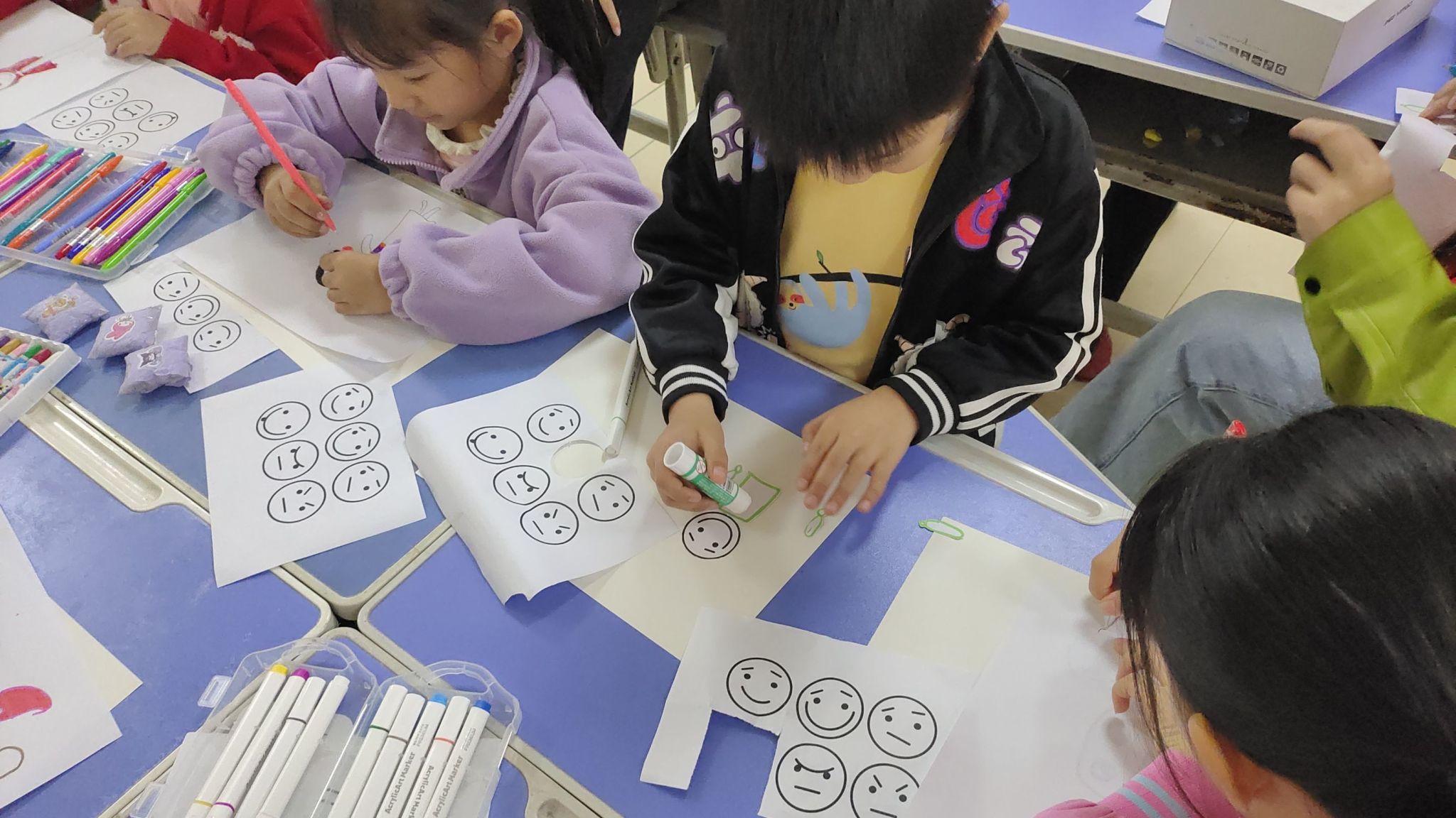 在充分了解“情绪”之后,小朋友们开始在志愿者的帮助下为自己的“情绪”做一幅画。每位小朋友充分发挥自己最大的想象力作画,志愿者们也通过裁剪表情和粘贴画来帮助小朋友们进行情绪图片制作。
