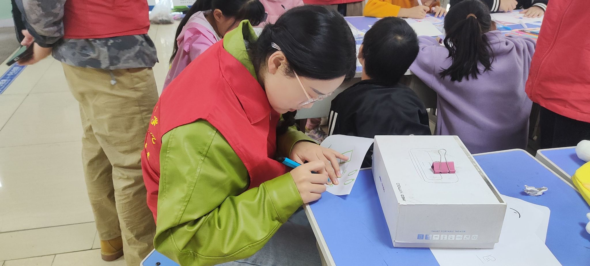 活动开始前,志愿者们带领小朋友玩“你来比划,我来猜”的游戏活跃气氛。此小游戏让小朋友们协同合作猜出词或成语,小朋友都积极思考参与到游戏中来,借此提高小朋友们之间的默契并拉进志愿者们和小朋友们彼此之间距离,现场氛围逐渐热闹起来,为后续活动顺利进行打下根基。