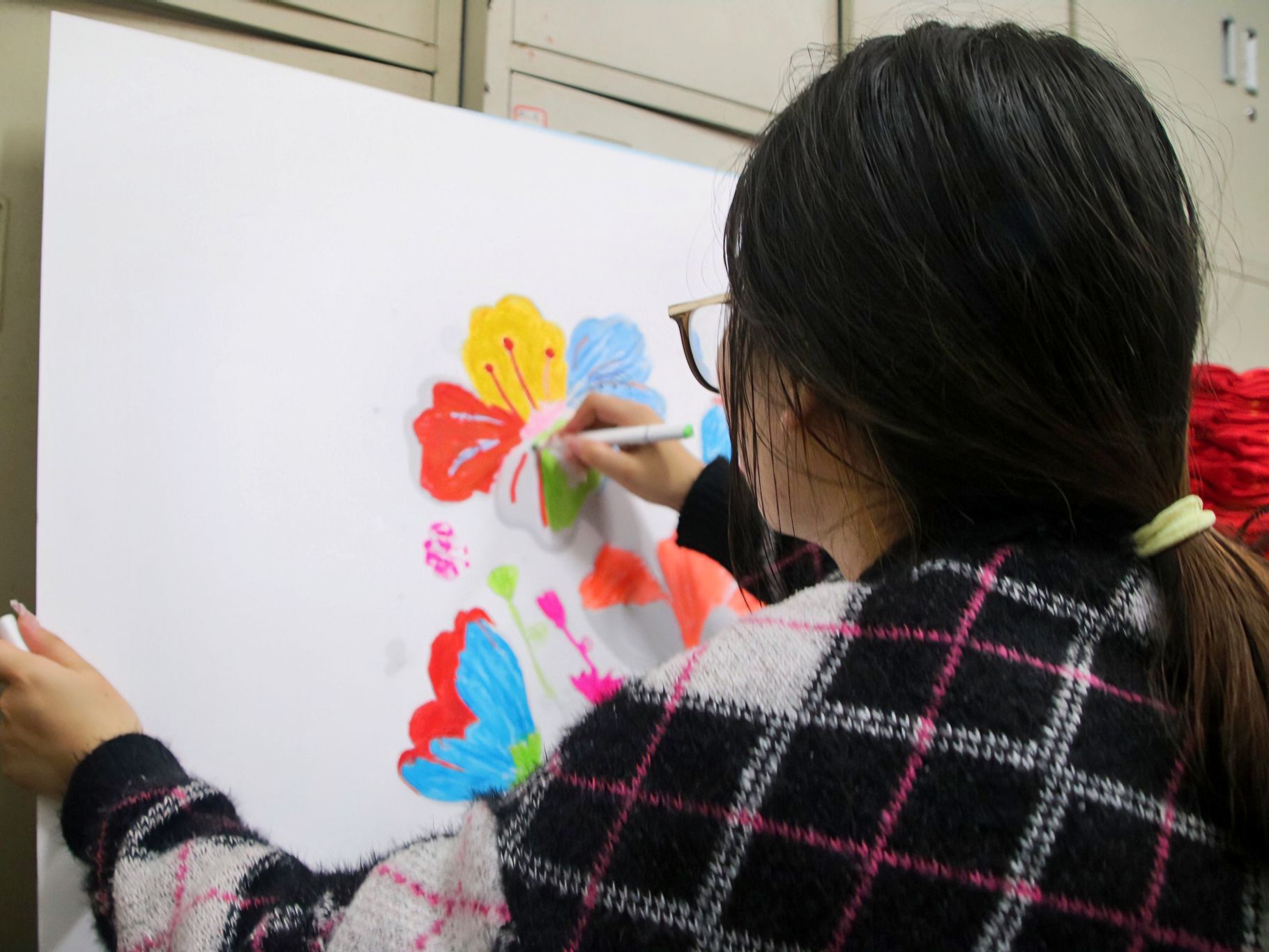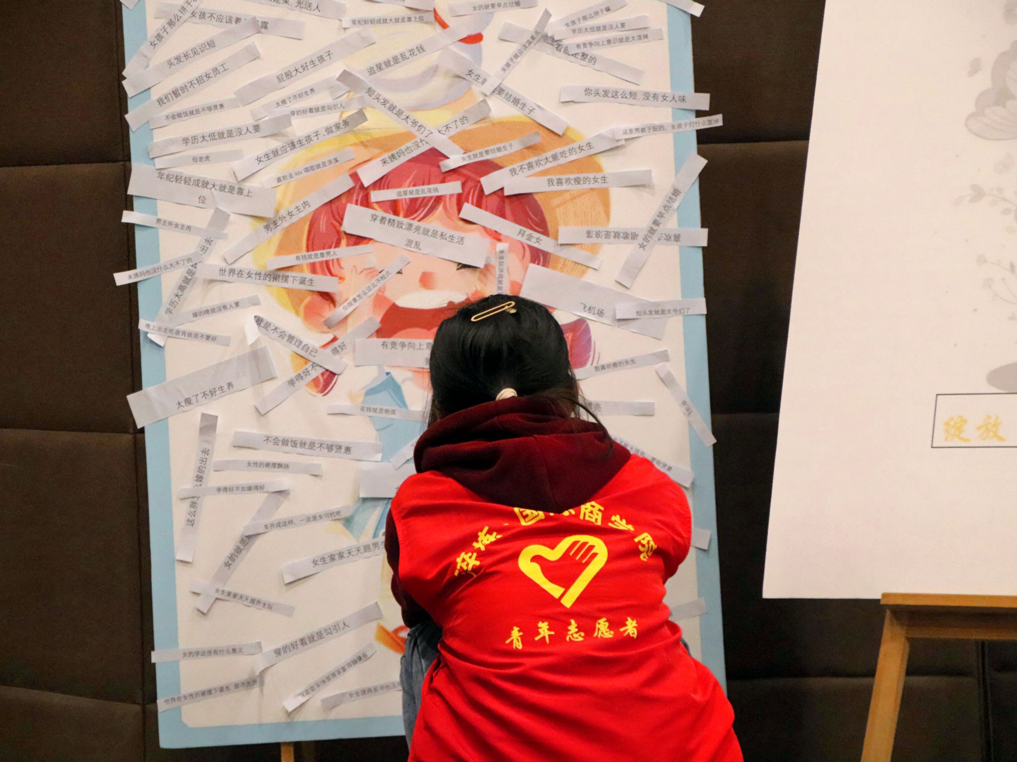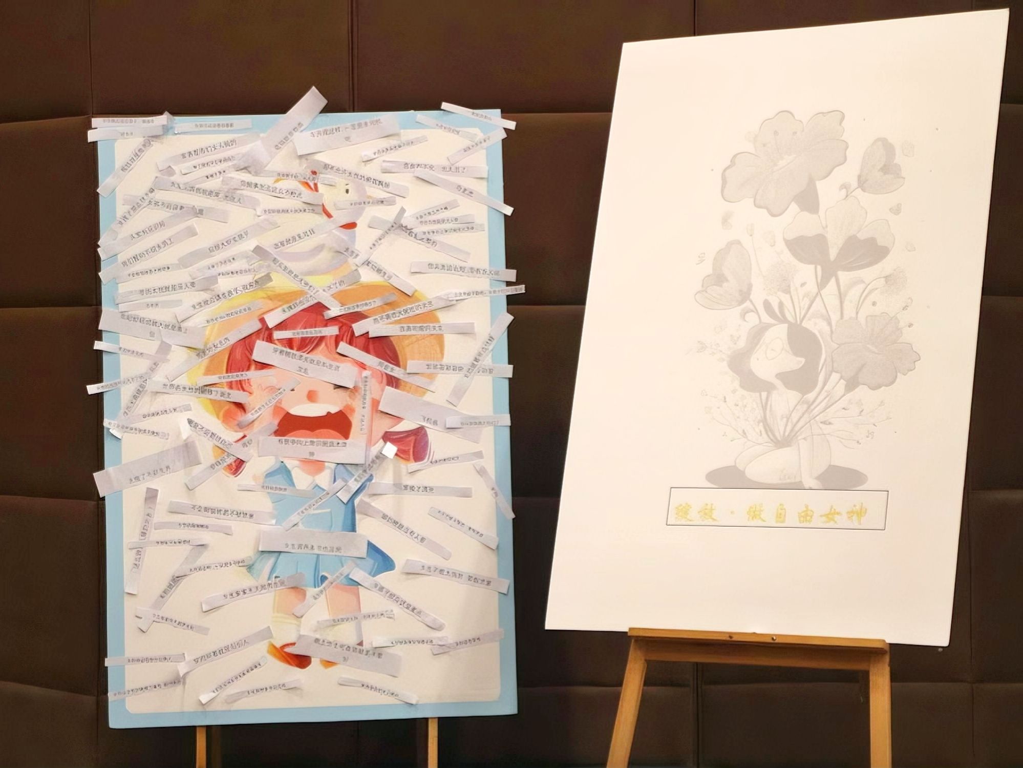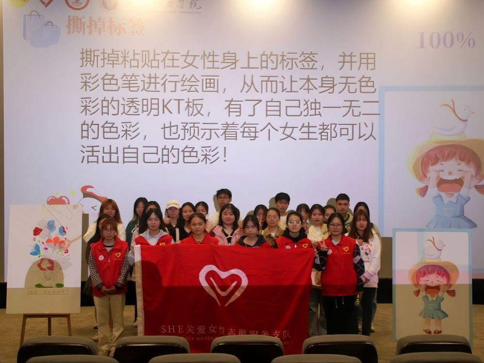 活动来到末尾,在志愿者们的协助下,开始活动的第三个环节——知识竞答环节。本环节在活动前期经过宣传和普及后,再由主持人向同学们进行记忆考验的形式进行提问,同学们都踊跃举手发言,都对“SHE”提出了独到的见解,从一定程度上加大了同学们对“SHE”关爱女性志愿服务专项支队来的了解程度。为了动员大家加入关爱女性的队列中,在志愿者的协助下在,通过“理论+实践”的方式在活动后期进行了“撕掉标签,做自己”解救小女孩以及“绽放,做自由女神”的绘画活动。