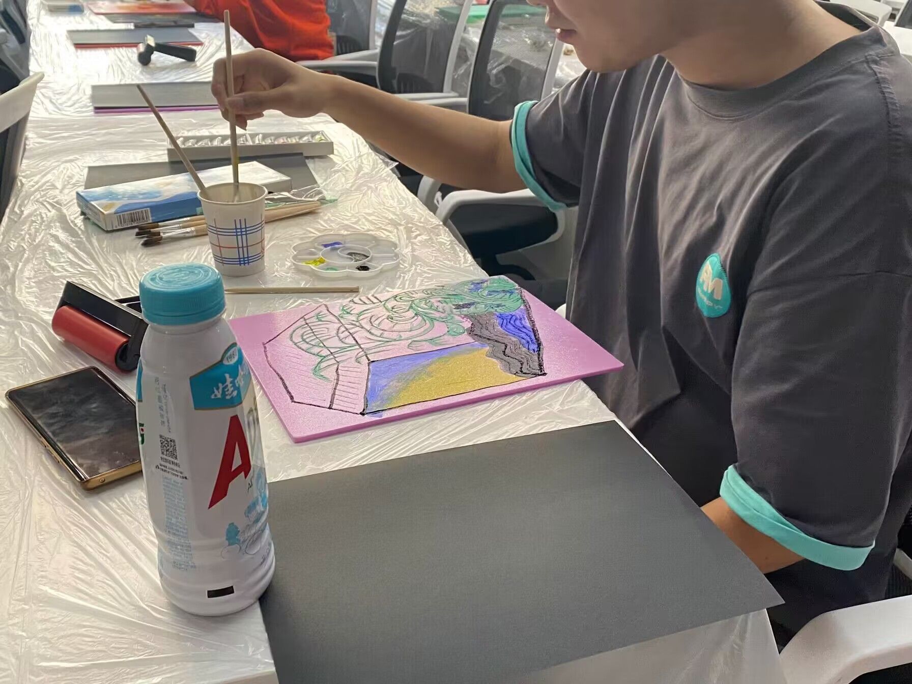 在版画制作过程中,在志愿者的带领下,大家发挥自己强大的想象力一步一步地创作出来,精心且耐心地制作属于自己的版画。从构思、制版、调色到拓印,一张张富有奇妙色彩和趣味气息的吹塑纸版画作品逐渐展现。过程虽漫长繁杂,却使大家深切领略到版画文化独特的风格和鲜明的色彩,感受到了传统技艺之美,并且逐渐意识到传承非遗文化需要得到传承的重要性。