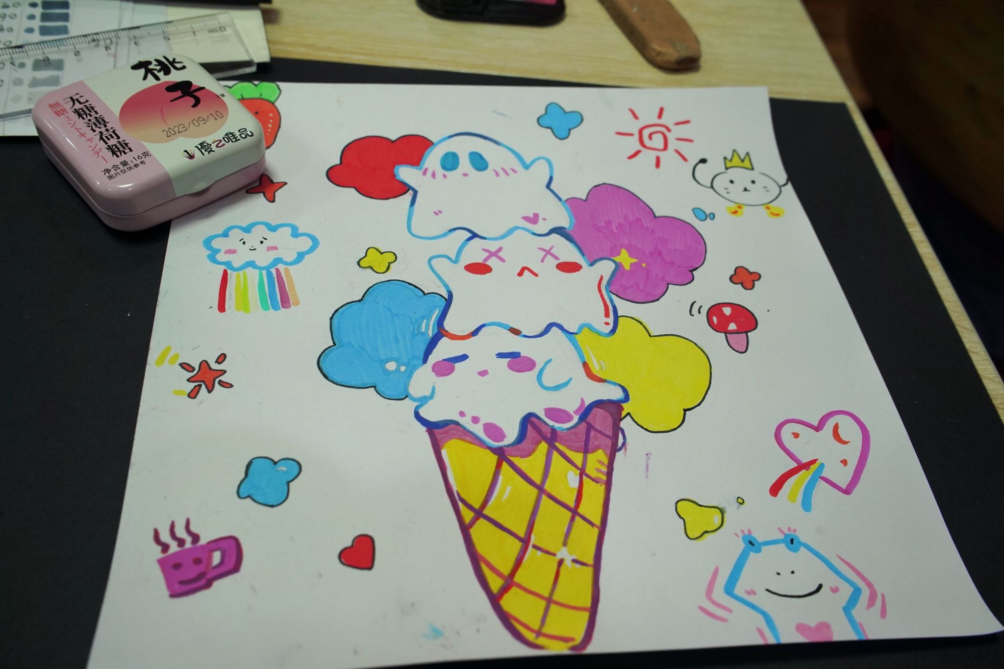 为让小朋友有更多的灵感来源,志愿者在活动开始前收集了许多绘画素材,并准备了画纸、马克笔、油画棒等相关绘画工具。绘画过程中,志愿者通过引导,拆分绘画步骤,用不同的绘画材料进行创作,教会小朋友绘画逻辑、基本构图方法以及着色技巧,鼓励小朋友充分发挥想象力和创造力。小朋友神奇的小手握着七彩的画笔,画出了满天的星河,画出了人间的浪漫,温暖又美好。