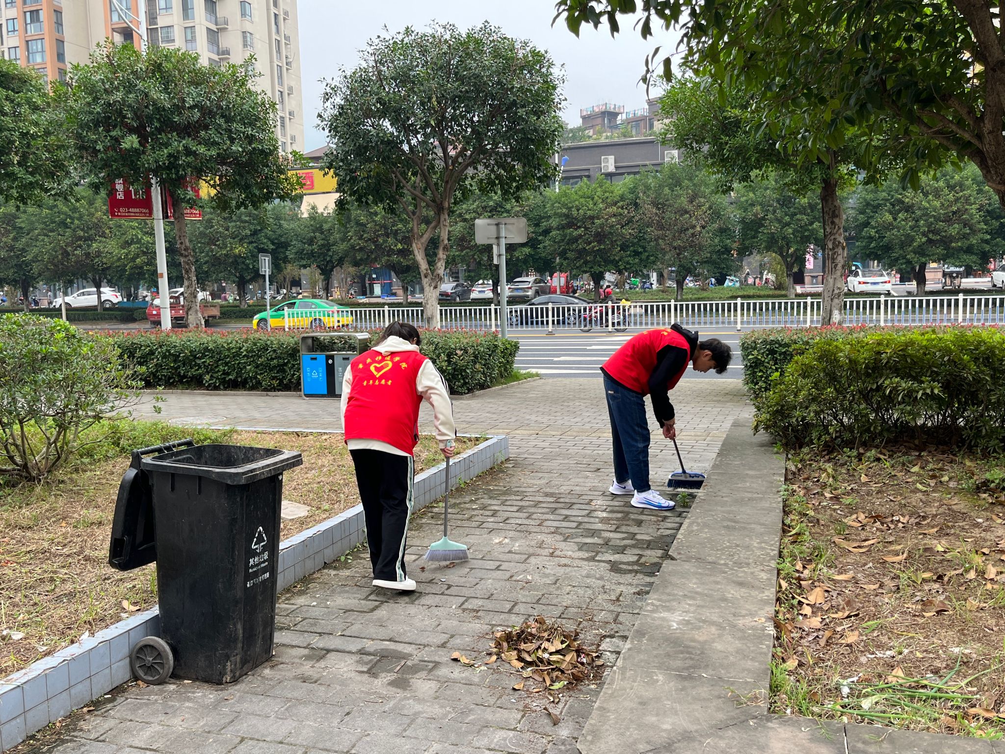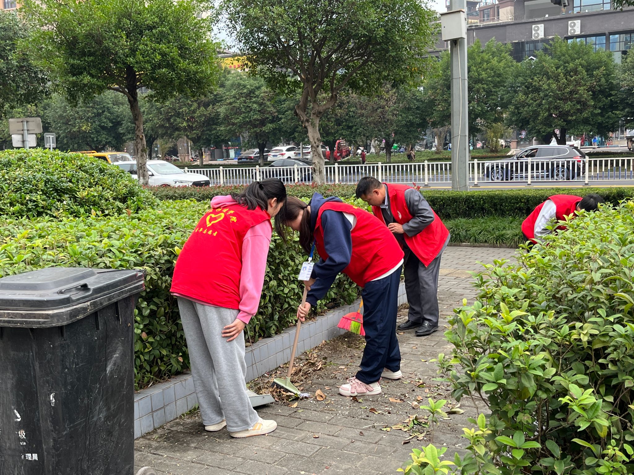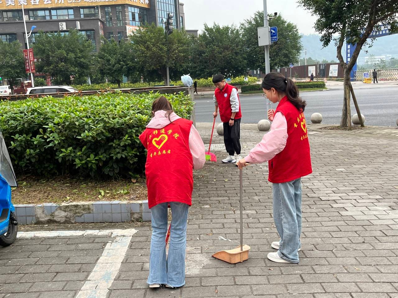 一大早,志愿者们怀揣着炽热的心,带着社区提前准备好的清扫工具来到清扫区域。根据社区工作人员的安排,每位志愿者分工明确,各司其职,在自己所负责的区域,手持扫帚,身穿红马甲,共同清理街道上的杂乱垃圾、烟蒂和纸屑,扫过花坛旁的落叶与果核。看着一筐筐垃圾被倒进垃圾桶,每个人都十分自豪。志愿者们手中的扫帚不停的摆动,扫过一片又一片的垃圾,为社区留下了美好的环境。同时路过的群众表露出的赞扬和他们赞许的目光,使志愿者们得到莫大的满足。