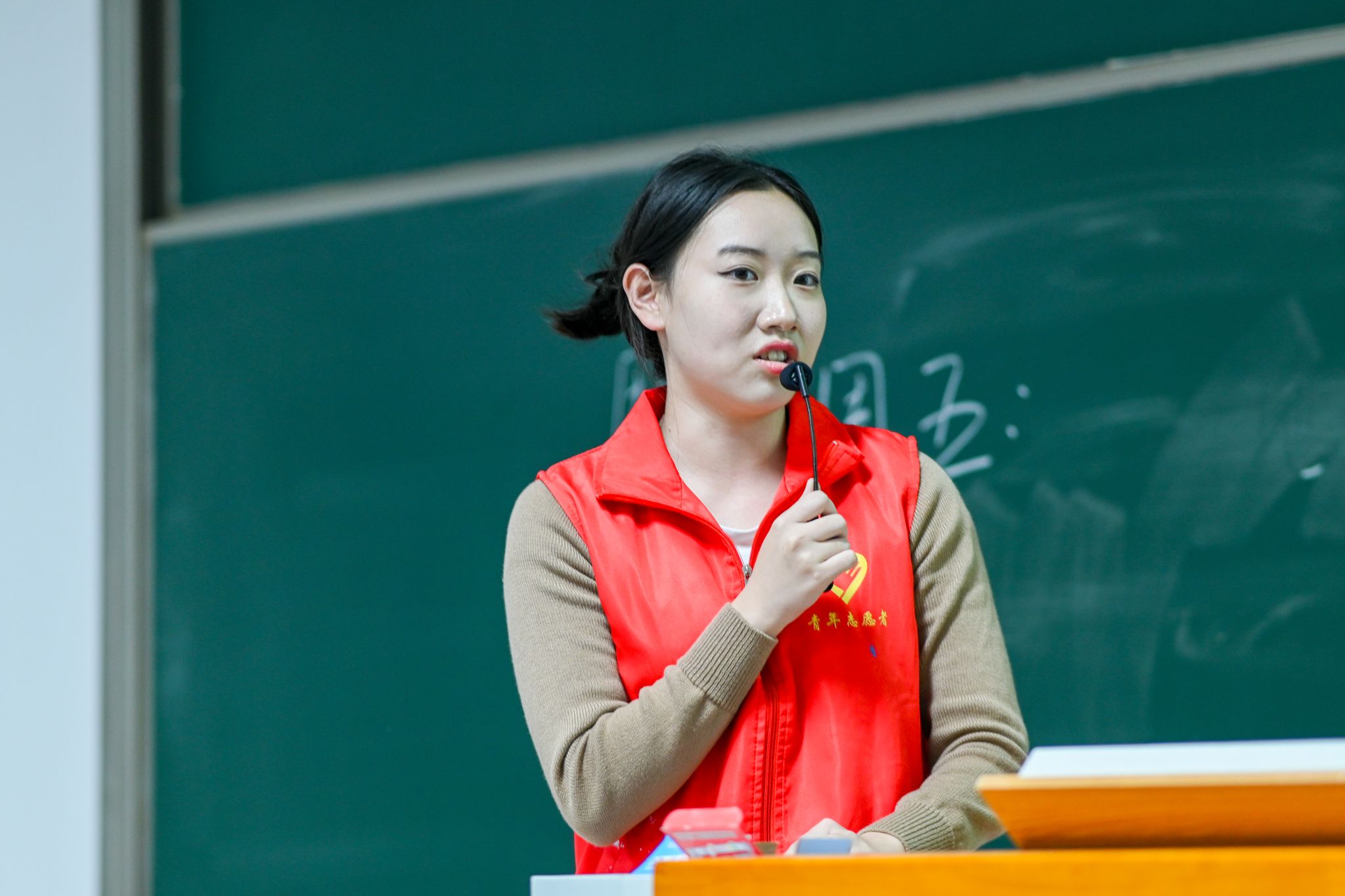 红十字应急救援志愿服务专项支队负责人李灏对支队工作进行概述,详细举例介绍该支队本学年举行的校内、校外、线上志愿服务活动。她表明接下来打造支队特色活动,开展更有意义的志愿服务活动和真正能学到技能的培训,将支队打造得更加专业化、特色化,拓展红十字志愿服务基地建设,加大志愿服务力度;“青鸽”赛会志愿服务专项支队李英琦介绍以往所举行的志愿服务活动,分享他们在服务过程中的经历和感受,以及他们如何克服困难,从而为社区提供更好的服务,无处不能感受得到每一个志愿者的温暖及用心,所以他们得到现场其他志愿者的热烈鼓掌。选择参加志愿活动不仅仅是热爱,更多的是使命与担当。最后,他们表明接下来会加强对支队内部成员的培训,进而提升队员对于志愿活动的主动参与感,使支队的发展更加契合队员的成长。