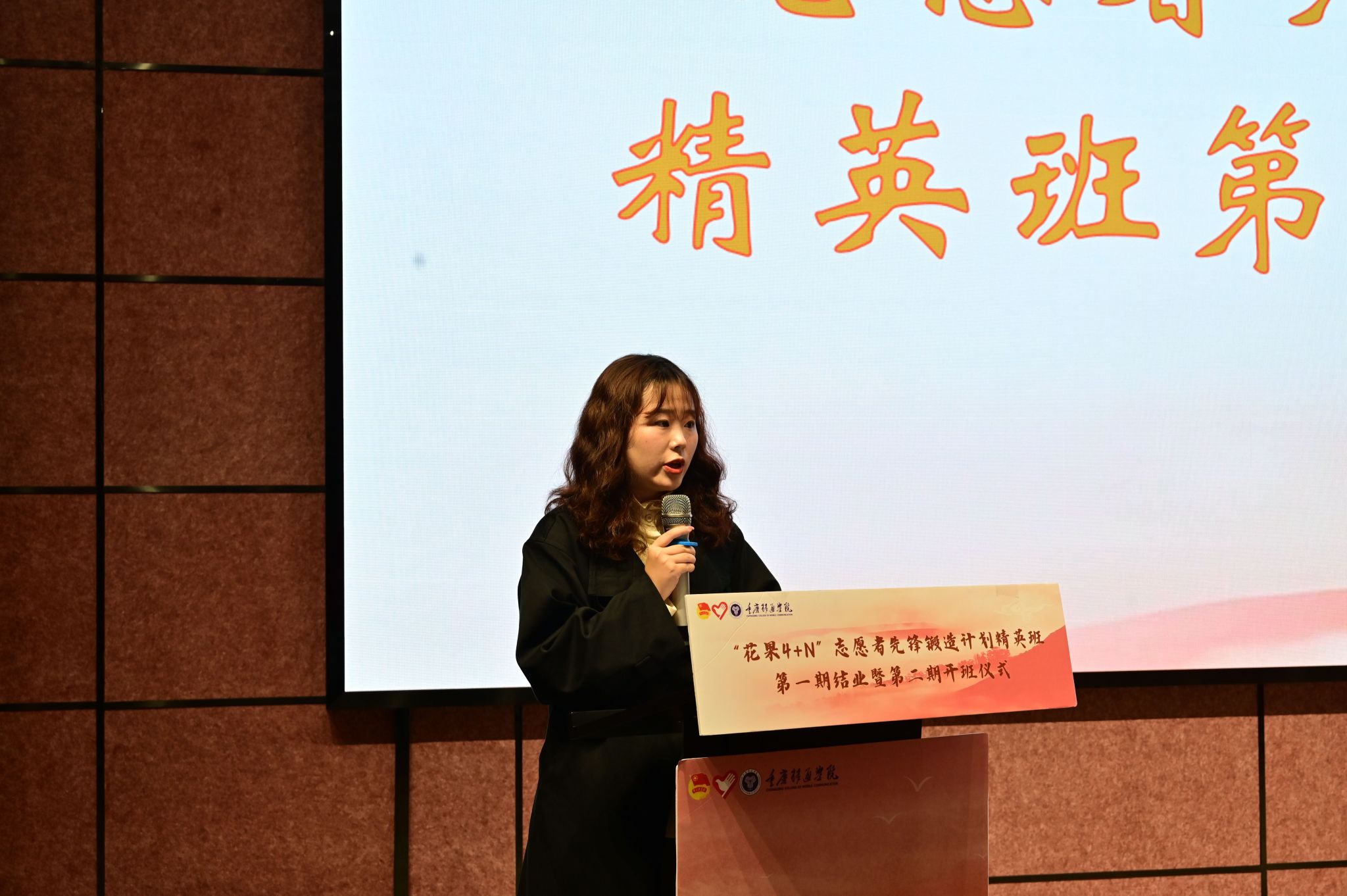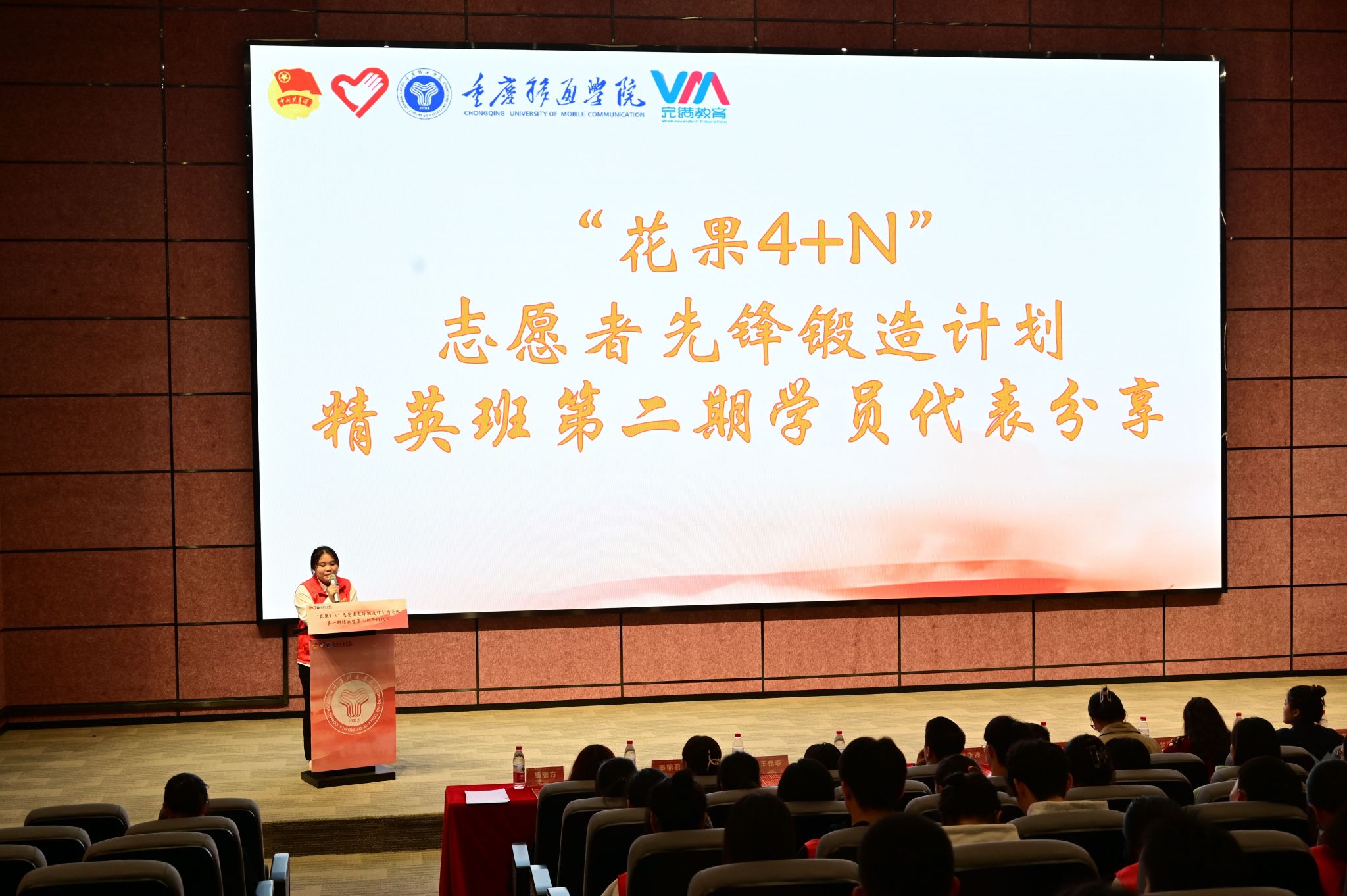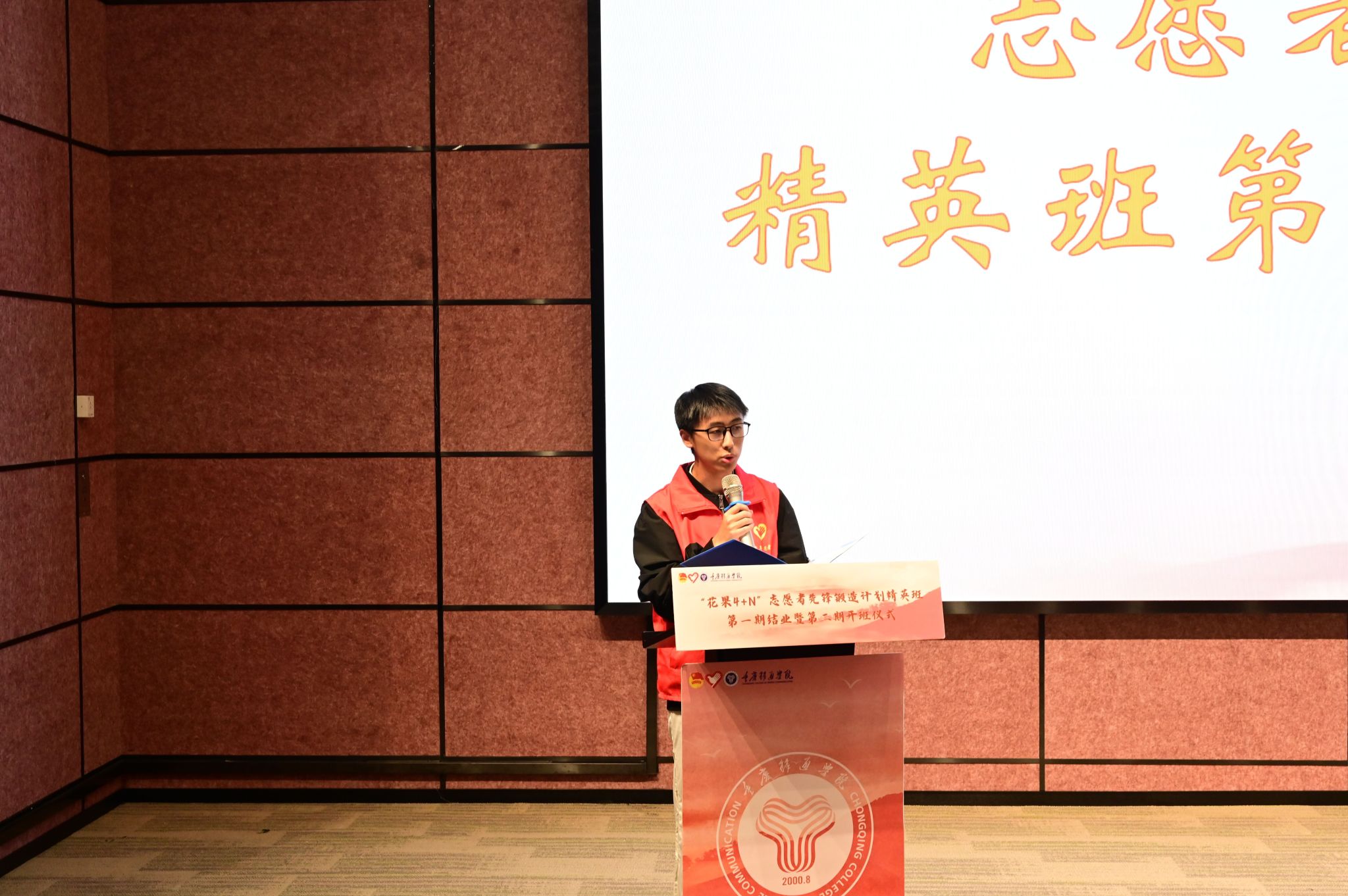 表彰先进争先锋,共赴美好在一“綦”。校团委副书记蔡星宇老师为“花果4+N”志愿者先锋锻造计划精英班第一期45名学员颁发结业证书并与同学们进行合影留念,为“花果4+N”志愿者先锋锻造计划精英班第一期画上完满的句号。回顾过去,展望未来。“花果4+N”志愿者先锋锻造计划精英班第一期学员代表江文豪同学在分享中提到“我选择加入精英班是想在志愿服务这条道路上走得再远一点。”他表示希望在今后志愿服务成长的路上,认识到更多志同道合的志愿者小伙伴们,通过加强对校园志愿服务的了解与认识,发挥志愿骨干的领导作用,带动移通志愿服务组织发展,扩大志愿服务影响范围,让“移通红”成为移通学子的一道光!