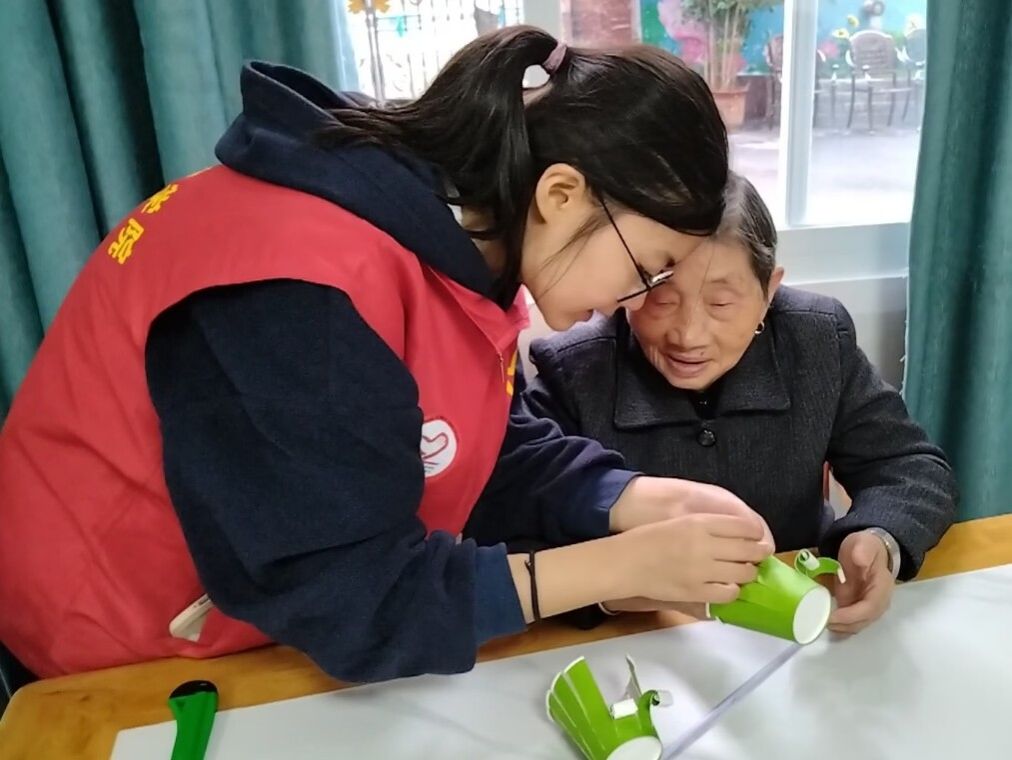 志愿者们为行动不便的爷爷奶奶们捏捏腿,锤锤肩,剪剪指甲,与爷爷奶奶们一起聊天,教爷爷奶奶们打麻将,用纸杯一步一步、一点一点教爷爷奶奶们完成手工花的制作,在齐心协力下共同完成了一个个精美的手工作品,亲密而温馨的氛围弥漫而起。此次关爱老人活动,让爷爷奶奶们感受到了年轻一代的关爱和陪伴,参与手工活动提供了老人们展示自己技艺和智慧的机会,增强了其自信心,激发了老人们积极参与社会活动和生活的热情。