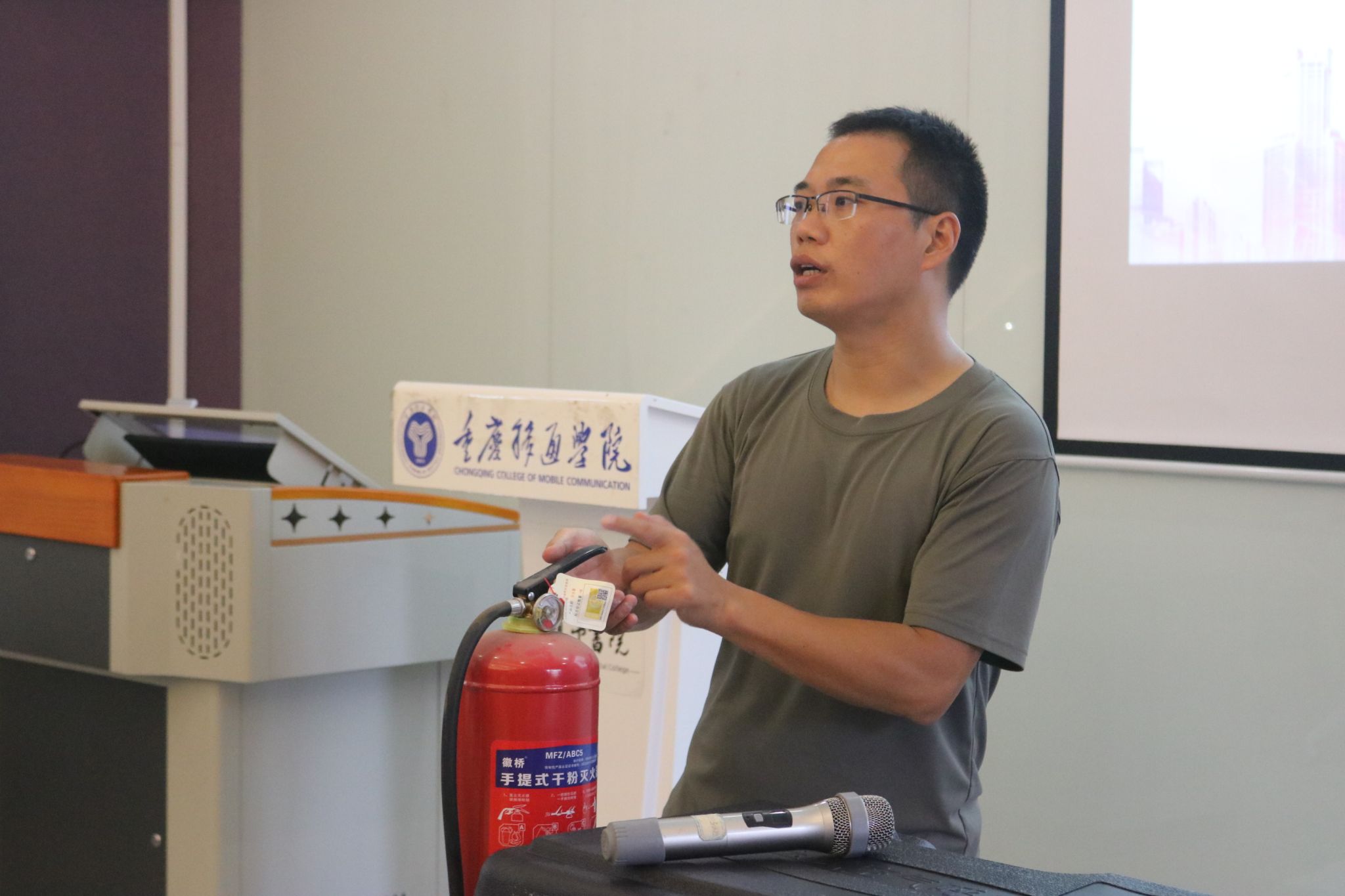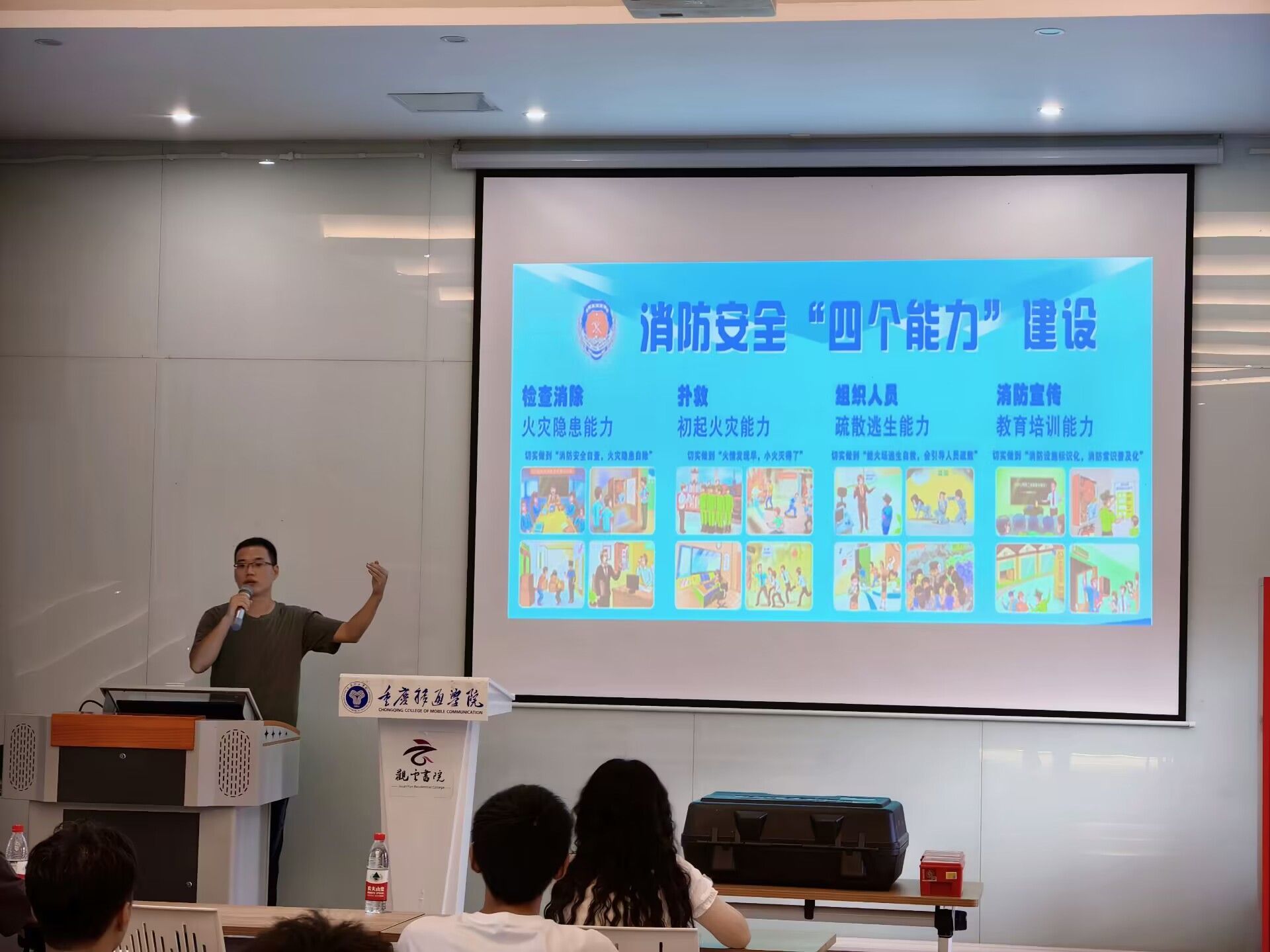 此次活动分为两个部分,第一个部分是消防知识讲解环节。学院特别邀请到了綦江区森林防火先进个人李小伟老师作为本次活动的嘉宾,为参与者们带来一场生动且实用的消防知识讲座。李小伟老师以专业的素养和丰富的经验,深入浅出地讲解了火灾预防的基本概念、灭火的基本方法、火灾种类、发生火灾时怎么办、灭火常识、自救互救等。他通过真实的案例,让同学们深刻认识到了火灾的无情和消防安全的重要性。在讲解过程中,同学们全神贯注,认真聆听,不时记录下重要的知识点。