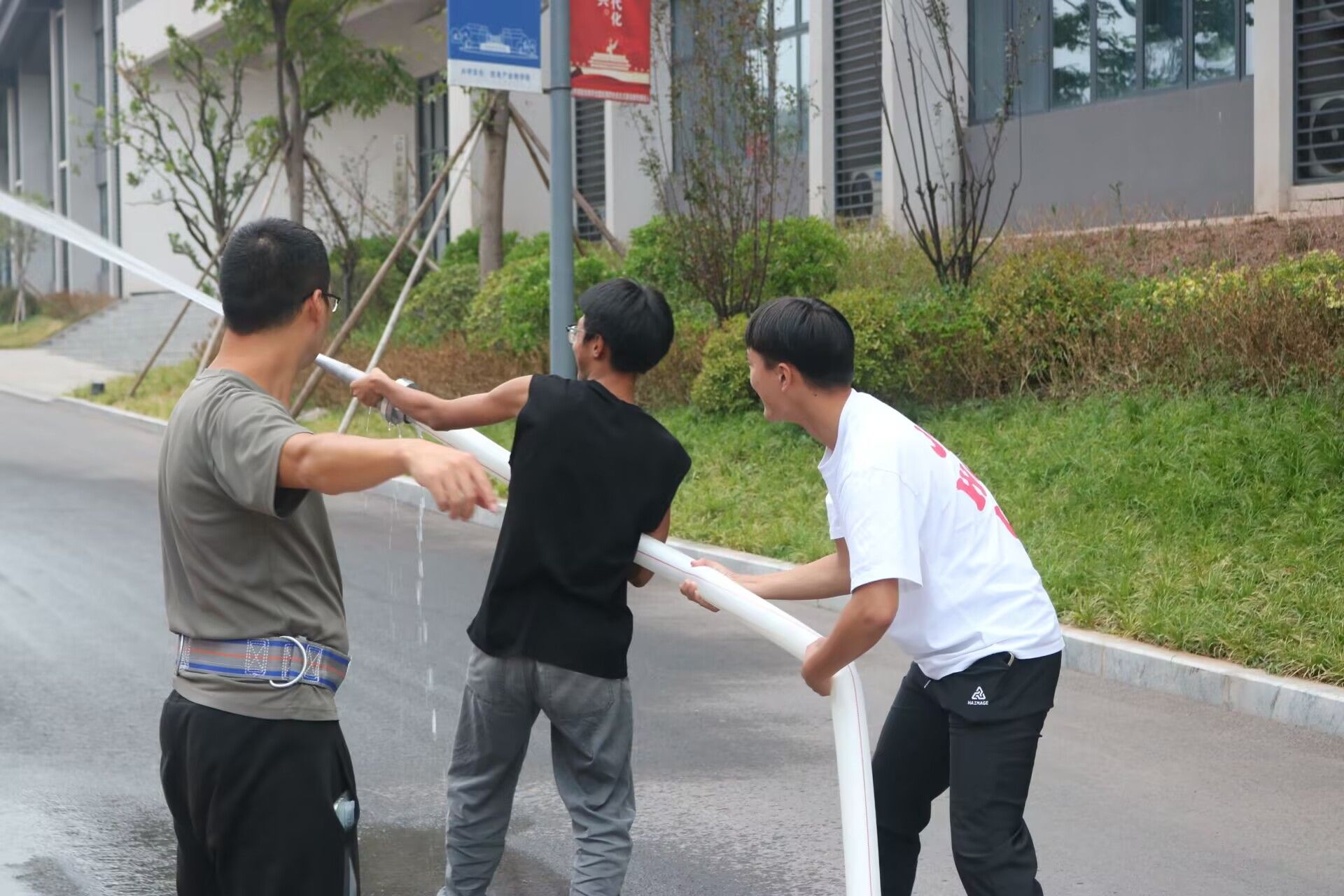 时间来到了精彩有趣的室外消防演练环节。在演练现场,参与者在老师和工作人员的指导下,亲身体验了灭火器和消火栓的正确使用方法。大家按照预定的方案,有序地进行着各项演练内容。在使用灭火器的环节中,同学们勇敢地拿起灭火器,对准火源进行喷射,成功地将“火”扑灭。