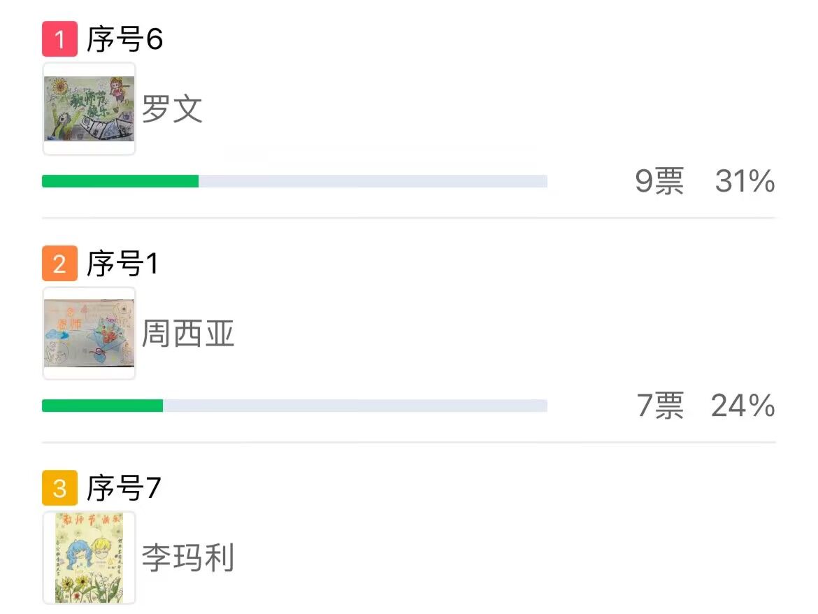 在参与者们介绍完自己的作品之后,随之进入投票环节。参与者用心欣赏绘画,将宝贵的两票投给了自己的心仪作品。在工作人员紧张计票后,罗文同学荣获一等奖,周西亚同学荣获二等奖,李玛利同学荣获三等奖,工作人员为他们颁发奖状。