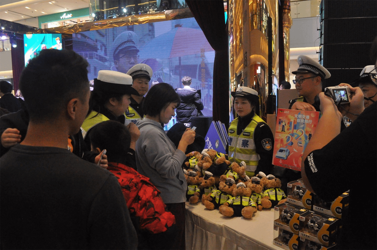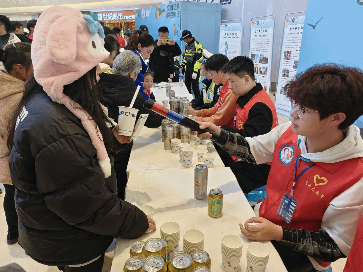 此外,活动现场还设有酒精检测体验、活动抽奖区以及承诺签名区。在酒精检测体验区,参与者通过实际的监测数据,直观地了解哪种程度算是酒驾,也提醒群众在生活中严禁酒驾;群众在参与活动时收集印章,集满5个就可参与抽奖,交巡警支队准备了交警小熊、抽纸盒、手机支架、水彩笔等多样礼品,最后大家在承诺签名墙上签字,在生活中严格遵守交通法律法规,并带动身边的亲人朋友一起做交通文明人,大家共同创建交通文明城市。